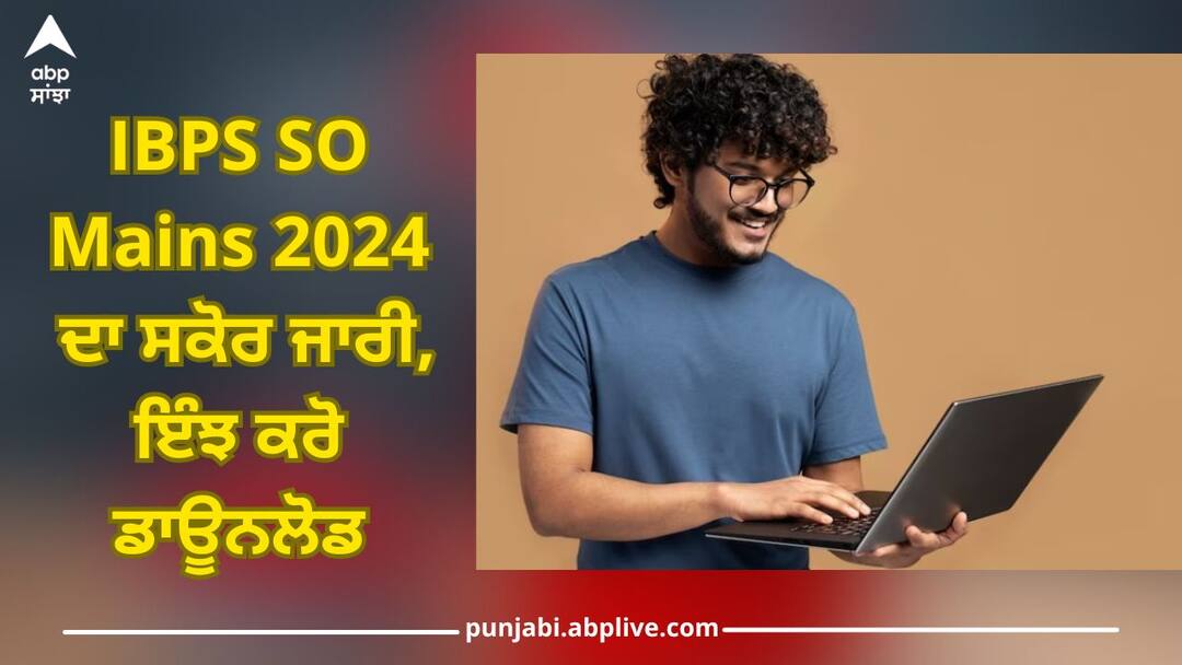 IBPS SO Mains 2024: ਇੰਸਟੀਚਿਊਟ ਆਫ ਬੈਂਕਿੰਗ ਪਰਸੋਨਲ ਸਿਲੈਕਸ਼ਨ ਨੇ IBPS ਸਪੈਸ਼ਲਿਸਟ ਅਫਸਰਾਂ ਦੀ ਭਰਤੀ ਦਾ ਸਕੋਰ ਜਾਰੀ ਕੀਤਾ ਹੈ। ਯੋਗ ਉਮੀਦਵਾਰ ਅਧਿਕਾਰਤ ਵੈੱਬਸਾਈਟ www.ibps.in ਰਾਹੀਂ ਸਕੋਰ ਚੈੱਕ ਅਤੇ ਡਾਊਨਲੋਡ ਕਰ ਸਕਦੇ ਹਨ। ਉਮੀਦਵਾਰ ਆਪਣੇ ਰਜਿਸਟ੍ਰੇਸ਼ਨ ਨੰਬਰ/ਰੋਲ ਨੰਬਰ ਅਤੇ ਪਾਸਵਰਡ/ਜਨਮ ਮਿਤੀ ਦੀ ਵਰਤੋਂ ਕਰਕੇ ਆਪਣੇ IBPS SO ਮੁੱਖ ਸਕੋਰ ਨੂੰ ਡਾਊਨਲੋਡ ਕਰ ਸਕਦੇ ਹਨ।