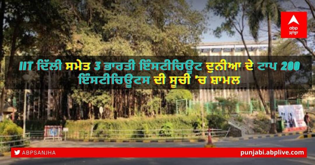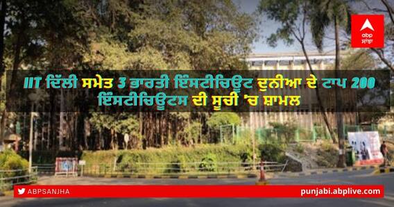 ਨਵੀਂ ਦਿੱਲੀ: ਭਾਰਤ ਦੀਆਂ ਤਿੰਨ ਉੱਚ ਵਿਦਿਅਕ ਸੰਸਥਾਵਾਂ ਨੂੰ ਦੁਨੀਆਂ ਦੇ ਟਾਪ 200 ਇੰਸਟੀਚਿਊਟਸ ਦੀ ਸੂਚੀ 'ਚ ਸ਼ਾਮਲ ਕੀਤਾ ਗਿਆ ਹੈ। ਲੰਡਨ 'ਚ ਜਾਰੀ ਕੀਤੀ ਗਈ ਕਿ ਕਿਊਐਸ ਵਰਲਡ ਯੂਨੀਵਰਸਿਟੀ ਰੈਂਕਿੰਗਜ਼ -2022 'ਚ IIT ਬੰਬੇ ਨੂੰ 177ਵਾਂ ਰੈਂਕ, IIT ਦਿੱਲੀ ਨੂੰ 185ਵਾਂ ਰੈਂਕ ਤੇ IISc ਬੰਗਲੁਰੂ ਨੂੰ 186ਵਾਂ ਰੈਂਕ ਮਿਲਿਆ ਹੈ। ਮਹੱਤਵਪੂਰਣ ਗੱਲ ਇਹ ਹੈ ਕਿ ਇਸ ਸੂਚੀ 'ਚ IIT ਬੰਬੇ ਨੇ ਲਗਾਤਾਰ ਚੌਥੀ ਵਾਰ ਟਾਪ-200 'ਚ ਥਾਂ ਬਣਾਈ ਹੈ।