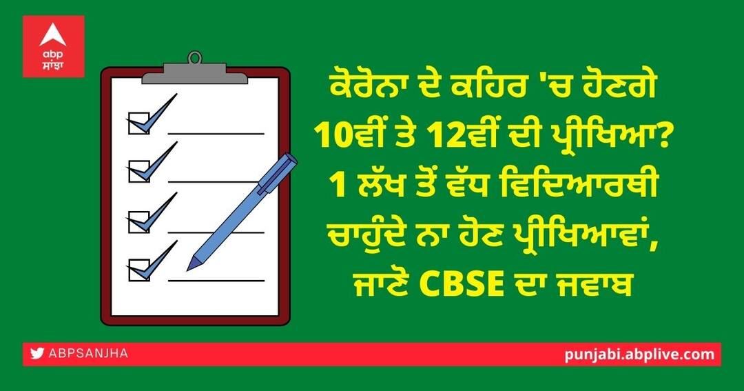 ਨਵੀਂ ਦਿੱਲੀ: ਕੋਰੋਨਾ ਦੀ ਲਾਗ ਦੇ ਵਧਦੇ ਮਾਮਲਿਆਂ ਦੌਰਾਨ 10ਵੀਂ ਤੇ 12ਵੀਂ ਜਮਾਤ ਦੇ ਇੱਕ ਲੱਖ ਤੋਂ ਵੱਧ ਵਿਦਿਆਰਥੀਆਂ ਨੇ ਸਰਕਾਰ ਨੂੰ ਬੇਨਤੀ ਕੀਤੀ ਹੈ ਕਿ ਉਹ ਮਈ ਮਹੀਨੇ ਹੋਣ ਵਾਲੀਆਂ ਬੋਰਡ ਦੀਆਂ ਪ੍ਰੀਖਿਆਵਾਂ ਰੱਦ ਕਰ ਦੇਣ ਜਾਂ ਉਨ੍ਹਾਂ ਨੂੰ ਆਨਲਾਈਨ ਮੋਡ ਵਿੱਚ ਲੈਦ। ਦੱਸ ਦੇਈਏ ਕਿ ਪਿਛਲੇ ਦੋ ਦਿਨਾਂ ਤੋਂ ਟਵਿਟਰ ਉਤੇ #cancelboardexams2021 ਟ੍ਰੈਂਡ ਕਰ ਰਿਹਾ ਹੈ।