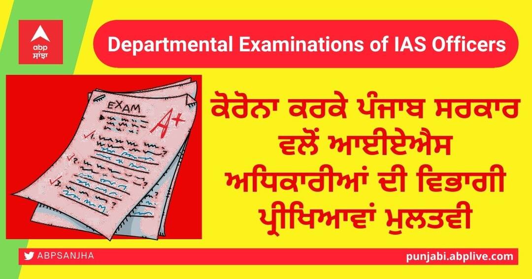 ਚੰਡੀਗੜ੍ਹ: ਪੰਜਾਬ ਸਰਕਾਰ ਨੇ ਅਗਲੇ ਹੁਕਮਾਂ ਤੱਕ ਵੱਖ-ਵੱਖ ਵਿਭਾਗਾਂ ਦੇ ਆਈਏਐਸ ਅਤੇ ਪੀਸੀਐਸ ਅਧਿਕਾਰੀਆਂ ਅਤੇ ਹੋਰ ਅਧਿਕਾਰੀਆਂ ਦੀ ਵਿਭਾਗੀ ਜਾਂਚ ਮੁਲਤਵੀ ਕਰ ਦਿੱਤੀ ਹੈ। ਕੋਵਿਡ -19 ਮਹਾਂਮਾਰੀ ਦੇ ਵੱਧ ਰਹੇ ਮਾਮਲਿਆਂ ਦੇ ਮੱਦੇਨਜ਼ਰ ਸਾਰੇ ਅਧਿਕਾਰੀ ਕੋਵਿਡ ਨਾਲ ਸਬੰਧਤ ਡਿਊਟੀਆਂ 'ਤੇ ਤਾਇਨਾਤ ਹਨ।