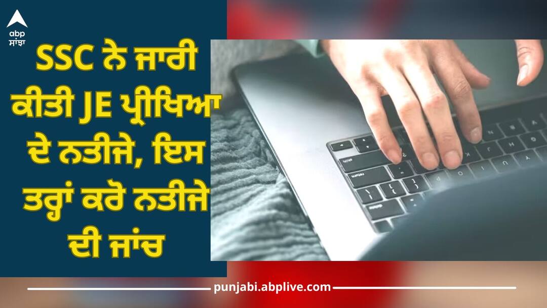 SSC JE Result 2023 Released: ਨਤੀਜਾ ਕਿਵੇਂ ਚੈੱਕ ਕਰਨਾ ਹੈਕਦਮ 1: ਨਤੀਜਿਆਂ ਦੀ ਜਾਂਚ ਕਰਨ ਲਈ, ਉਮੀਦਵਾਰਾਂ ਨੂੰ ਪਹਿਲਾਂ SSC ਦੀ ਅਧਿਕਾਰਤ ਵੈੱਬਸਾਈਟ ssc.nic.in 'ਤੇ ਜਾਣਾ ਚਾਹੀਦਾ ਹੈ।ਸਟੈਪ 2: ਇਸ ਤੋਂ ਬਾਅਦ ਉਮੀਦਵਾਰ ਦੇ ਹੋਮਪੇਜ 'ਤੇ SSC JE ਨਤੀਜਾ 2023 ਦੇ ਲਿੰਕ 'ਤੇ ਕਲਿੱਕ ਕਰੋ।ਕਦਮ 3: ਫਿਰ ਉਮੀਦਵਾਰ ਆਪਣਾ ਰਜਿਸਟ੍ਰੇਸ਼ਨ ਨੰਬਰ ਅਤੇ ਰੋਲ ਨੰਬਰ ਦਾਖਲ ਕਰਦੇ ਹਨ।ਸਟੈਪ 4: ਇਸ ਤੋਂ ਬਾਅਦ ਉਮੀਦਵਾਰ ਸਬਮਿਟ ਬਟਨ 'ਤੇ ਕਲਿੱਕ ਕਰੋ।ਕਦਮ 5: ਫਿਰ ਉਮੀਦਵਾਰ ਦਾ ਨਤੀਜਾ ਸਕ੍ਰੀਨ 'ਤੇ ਪ੍ਰਦਰਸ਼ਿਤ ਹੋਵੇਗਾ।