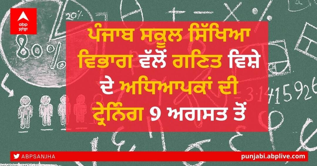 Training of Maths Teachers: ਚੰਡੀਗੜ੍ਹ: ਪੰਜਾਬ ਸਕੂਲ ਸਿੱਖਿਆ ਵਿਭਾਗ ਵੱਲੋਂ 9 ਅਗਸਤ ਤੋਂ 13 ਅਗਸਤ ਤੱਕ ਮੈਥ ਲੈਕਚਰਾਰਾਂ ਅਤੇ ਮੈਥ ਮਾਸਟਰ/ਮਿਸਟ੍ਰੈਸਾਂ ਦੇ ਵੈੱਬੀਨਾਰ ਦਾ ਆਯੋਜਨ ਕੀਤਾ ਜਾ ਰਿਹਾ ਹੈ। ਇਸ ਦੀ ਜਾਣਕਾਰੀ ਦਿੰਦਿਆਂ ਸਿੱਖਿਆ ਵਿਭਾਗ ਦੇ ਬੁਲਾਰੇ ਨੇ ਦੱਸਿਆ ਕਿ ਛੇਵੀਂ ਤੋਂ ਬਾਰਵੀਂ ਜਮਾਤ ਤੱਕ ਪੜਦੇ ਸਾਰੇ ਵਿਦਿਆਰਥੀਆਂ ਨੂੰ ਪਰਸਨਲਾਈਜਡ ਪ੍ਰੈਕਟਿਸ ਪ੍ਰੋਗਰਾਮ ਤਹਿਤ ਗਣਿਤ ਵਿਸ਼ੇ ਦੀ ਆਨਲਾਈਨ ਸਿੱਖਿਆ ਪ੍ਰਦਾਨ ਕੀਤੀ ਜਾ ਰਹੀ ਹੈ।