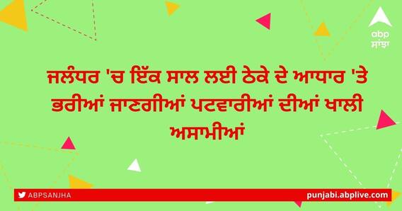 ਜਲੰਧਰ: ਪੰਜਾਬ ਸਰਕਾਰ ਵੱਲੋਂ ਜਾਰੀ ਹਦਾਇਤਾਂ ਦੀ ਪਾਲਣਾ ਕਰਦਿਆਂ ਜ਼ਿਲ੍ਹਾ ਪ੍ਰਸ਼ਾਸਨ ਵੱਲੋਂ ਜਲੰਧਰ ਵਿੱਚ ਠੇਕੇ ਦੇ ਆਧਾਰ 'ਤੇ ਮਾਲ ਪਟਵਾਰੀਆਂ ਦੀਆਂ 221 ਖਾਲੀ ਅਸਾਮੀਆਂ ਨੂੰ ਭਰਨ ਲਈ ਸੇਵਾਮੁਕਤ ਪਟਵਾਰੀਆਂ/ਕਾਨੂੰਗੋਆਂ ਤੋਂ ਅਰਜ਼ੀਆਂ ਦੀ ਮੰਗ ਕੀਤੀ ਗਈ ਹੈ ।