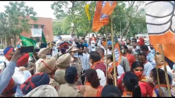ਕਾਂਗਰਸ, ਅਕਾਲੀ ਦਲ ਤੇ ਕਿਸਾਨਾਂ ਨੇ ਇਕੱਠੇ ਹੋ ਕੇ ਉਨ੍ਹਾਂ ਖ਼ਿਲਾਫ਼ ਨਾਅਰੇਬਾਜ਼ੀ ਸ਼ੁਰੂ ਕਰ ਦਿੱਤੀ। ਸਥਿਤੀ ਤਣਾਅਪੂਰਨ ਬਣ ਗਈ, ਜਿਸ ਦੇ ਚੱਲਦਿਆਂ ਪੁਲਿਸ ਨੇ ਮੁਸ਼ਕਲ ਨਾਲ ਭਾਜਪਾ ਲੀਡਰਾਂ ਤੇ ਮਹਿਲਾ ਵਰਕਰਾਂ ਨੂੰ ਡੀਸੀ ਦਫਤਰ 'ਚ ਬੰਦ ਕਰ ਦਿੱਤਾ ਤਾਂ ਜੋ ਕਿਸੇ ਵੀ ਅਣਹੋਣੀ ਤੋਂ ਬਚਿਆ ਜਾ ਸਕੇ। ਕਿਸਾਨ ਆਗੂ ਨਿਰਮਲ ਸਿੰਘ ਨੇ ਕਿਹਾ ਕਿ ਭਾਜਪਾ ਦੇ ਝੰਡੇ ਦੇਖ ਕੇ ਉਨ੍ਹਾਂ ਦਾ ਖੂਨ ਖੌਲ ਜਾਂਦਾ ਹੈ।