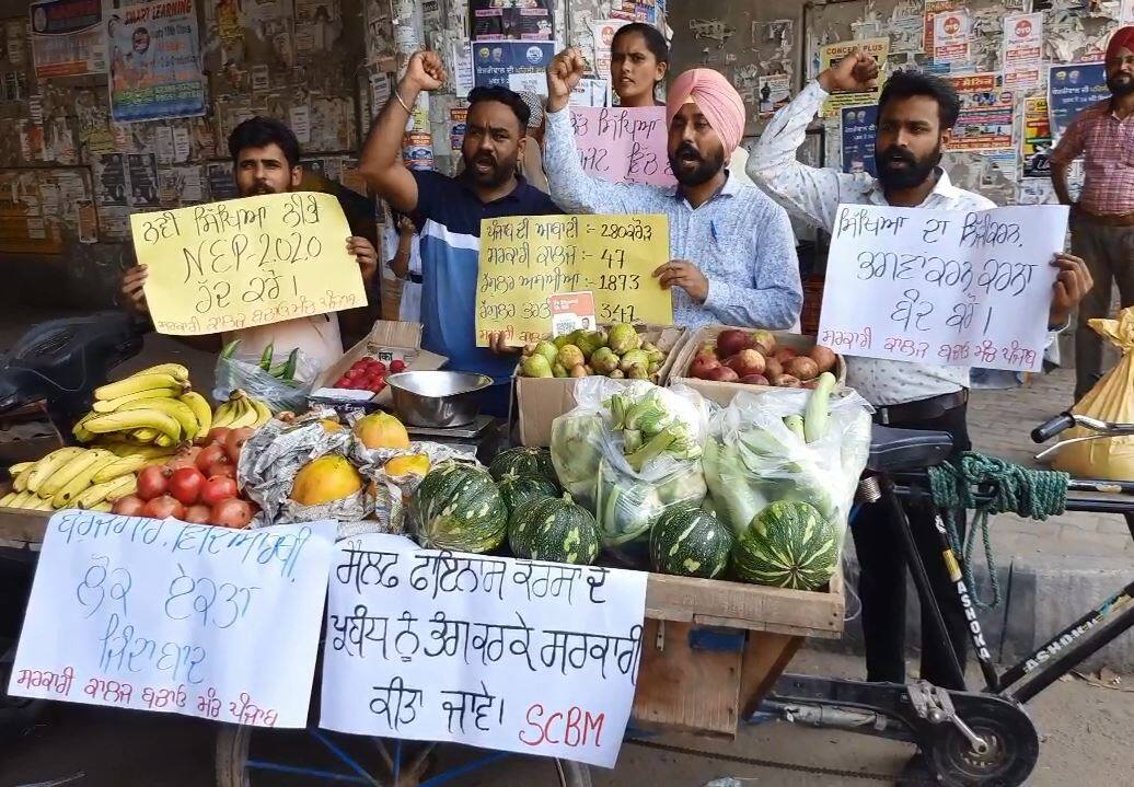 ਪਟਿਆਲਾ: ਸਰਕਾਰੀ ਕਾਲਜ ਬਚਾਓ ਮੰਚ ਦੀ ਅਗਵਾਈ ਵਿੱਚ ਪੰਜਾਬੀ ਯੂਨੀਵਰਸਿਟੀ ਦੇ ਖੋਜਾਰਥੀਆਂ ਅਤੇ ਸਹਾਇਕ ਪ੍ਰੋਫੈਸਰਾਂ ਦੀ ਯੋਗਤਾ ਰੱਖਣ ਵਾਲੇ ਉਮੀਦਵਾਰਾਂ ਨੇ ਲਗਭਗ ਪਿਛਲੇ 25 ਸਾਲ ਤੋਂ ਸਰਕਾਰੀ ਕਾਲਜਾਂ 'ਚ ਬੰਦ ਪਈ ਪੱਕੀ ਭਰਤੀ ਖਿਲਾਫ ਸਬਜ਼ੀ ਦੀ ਰੇਹੜੀ ਲਾ ਕੇ ਤੇ ਆਪਣੀਆਂ ਡਿਗਰੀਆਂ ਵੇਚ ਕੇ ਸਰਕਾਰ ਖਿਲਾਫ ਰੋਸ ਪ੍ਰਦਰਸ਼ਨ ਕੀਤਾ। ਇਸ ਪ੍ਰਦਰਸ਼ਨ ਦੌਰਾਨ ਮੰਚ ਦੇ ਮੈਂਬਰਾਂ ਅਤੇ ਪੰਜਾਬੀ ਯੂਨੀਵਰਸਿਟੀ ਦੇ ਖੋਜਾਰਥੀਆਂ ਨੇ ਗਲਾਂ ਵਿੱਚ ਆਪਣੀ ਯੋਗਤਾ ਦੀਆਂ ਤਖਤੀਆਂ ਪਾ ਕੇ ਯੂਨੀਵਰਸਿਟੀ ਦੇ ਮੇਨ ਗੇਟ 'ਤੇ ਆਪਣਾ ਰੋਸ ਜਿਤਾਇਆ।