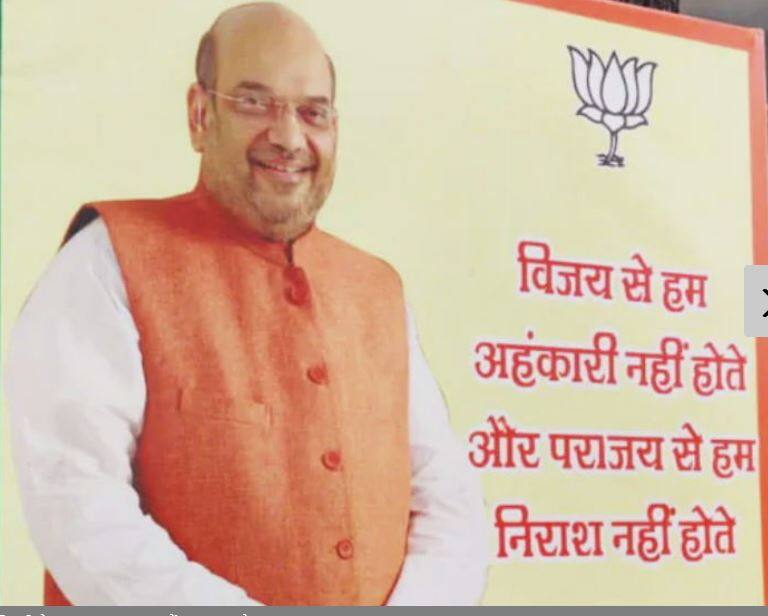 ਅਮਿਤ ਸ਼ਾਹ ਦੇ ਪੋਸਟਰ ਸੋਮਵਾਰ ਰਾਤ ਨੂੰ ਦਿੱਲੀ ਵਿਧਾਨ ਸਭਾ ਚੋਣਾਂ ਦੇ ਨਤੀਜਿਆਂ ਤੋਂ ਪਹਿਲਾਂ ਹੀ ਭਾਜਪਾ ਦੇ ਮੁੱਖ ਦਫਤਰ ਵਿੱਚ ਲਗਾਏ ਗਏ ਸੀ। ਇਸ 'ਚ ਲਿਖਿਆ ਹੈ, 'ਅਸੀਂ ਜਿੱਤ ਨਾਲ ਹੰਕਾਰੀ ਨਹੀਂ ਹੁੰਦੇ ਤੇ ਹਾਰ ਤੋਂ ਨਿਰਾਸ਼ ਨਹੀਂ ਹੁੰਦੇ।'