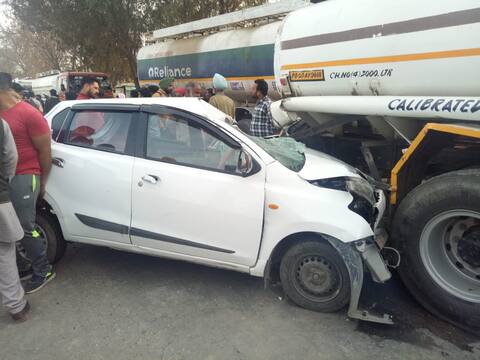 ਬਠਿੰਡਾ: ਇੱਥੇ ਦੇ ਜੱਸੀ ਚੌਕ 'ਤੇ ਭਿਆਨਕ ਸੜਕੀ ਹਾਦਸਾ ਹੋ ਗਿਆ ਜਿਸ 'ਚ ਦੋ ਲੋਕਾਂ ਦੀ ਮੌਤ ਤੇ ਇੱਕ ਗੰਭੀਰ ਜ਼ਖ਼ਮੀ ਹੋ ਗਿਆ। ਜ਼ਖ਼ਮੀ ਨੂੰ ਬਠਿੰਡਾ ਦੇ ਹਸਪਤਾਲ 'ਚ ਦਾਖਲ ਕਰਵਾਇਆ ਗਿਆ ਹੈ। ਦੱਸ ਦਈਏ ਕਿ ਜੱਸੀ ਚੌਕ 'ਚ ਕਾਰ ਸਵਾਰ ਤੇ ਬਾਈਕ 'ਤੇ ਸਵਾਰ ਦੋ ਲੋਕਾਂ ਦੀ ਮੌਕੇ 'ਤੇ ਮੌਤ ਹੋ ਗਈ। ਮੌਕੇ 'ਤੇ ਪਹੁੰਚੇ ਸਥਾਨਕ ਲੋਕਾਂ ਨੇ ਮ੍ਰਿਤਕਾਂ ਤੇ ਜ਼ਖ਼ਮੀਆਂ ਨੂੰ ਬਠਿੰਡਾ ਦੇ ਸਿਵਲ ਹਸਪਤਾਲ 'ਚ ਦਾਖਲ ਕਰਵਾਇਆ। ਦੱਸ ਦਈਏ ਕਿ ਚੌਕ 'ਤੇ ਤੇਲ ਦਾ ਟੈਂਕਰ ਜਾ ਰਿਹਾ ਸੀ ਜਿਸ ਨਾਲ ਪਿਛੇ ਤੋਂ ਆ ਰਹੀ ਕਾਰ ਟੱਕਰਾ ਗਈ। ਇਸ ਦੇ ਨਾਲ ਹੀ ਬਾਈਕ ਸਵਾਰ ਵੀ ਟਕਰਾ ਗਏ। ਇਸ ਹਾਦਸੇ 'ਚ ਮ੍ਰਿਤਕਾਂ ਦੀਆਂ ਲਾਸ਼ਾਂ ਨੂੰ ਫਿਲਹਾਲ ਹਸਪਤਾਲ ਦੇ ਮੁਰਦਾ ਘਰ 'ਚ ਰੱਖਿਆ ਗਿਆ ਹੈ। ਮ੍ਰਿਤਕਾਂ ਦੇ ਪਰਿਵਾਰਕ ਮੈਂਬਰਾਂ ਦੇ ਆਉਣ ਤੋਂ ਬਾਅਦ ਪੋਸਟਮਾਰਟਮ ਕੀਤਾ ਜਾਵੇਗਾ। ਮੌਕੇ 'ਤੇ ਪਹੁੰਚੀ ਪੁਲਿਸ ਨੇ ਵੀ ਜਾਂਚ ਸ਼ੁਰੂ ਕਰ ਅੱਗੇ ਕਾਰਵਾਈ ਆਰੰਭ ਕਰ ਦਿੱਤੀ ਹੈ।