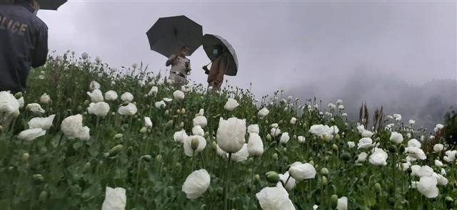 ਮੰਡੀ: ਹਿਮਾਚਲ ਪ੍ਰਦੇਸ਼ ਦੇ ਮੰਡੀ ਜ਼ਿਲ੍ਹੇ 'ਚ ਕਰੀਬ 66 ਬਿਘੇ ਜ਼ਮੀਨ 'ਚ ਗੈਰ ਕਾਨੂੰਨੀ ਢੰਗ ਨਾਲ ਭੁੱਕੀ ਦੀ ਬਿਜਾਈ ਦਾ ਮਾਮਲਾ ਸਾਹਮਣੇ ਆਇਆ ਹੈ। ਖੁਫੀਆ ਜਾਣਕਾਰੀ ਦੇ ਆਧਾਰ 'ਤੇ ਪਧਰਾ ਪੁਲਿਸ ਸਟੇਸ਼ਨ ਤੋਂ ਚਾਰ ਟੀਮਾਂ ਮੰਡੀ ਜ਼ਿਲੇ ਦੇ ਦਾਰੰਗ ਖੇਤਰ 'ਚ ਕਰੀਬ 6 ਘੰਟੇ ਦੇ ਸਫਰ ਮਗਰੋਂ ਪਹਾੜੀ ਦੀ ਚੋਟੀ 'ਤੇ ਪਹੁੰਚੀਆਂ।
