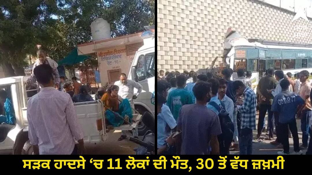 Road Accident: ਰਾਜਸਥਾਨ ਦੇ ਸੀਕਰ ਜ਼ਿਲ੍ਹੇ ਦੇ ਲਕਸ਼ਮਣਗੜ੍ਹ ਵਿੱਚ ਇੱਕ ਨਿੱਜੀ ਬੱਸ ਇੱਕ ਪੁਲੀ ਨਾਲ ਟਕਰਾ ਗਈ। ਇਸ ਹਾਦਸੇ 'ਚ 11 ਲੋਕਾਂ ਦੀ ਮੌਤ ਹੋ ਗਈ। 30 ਤੋਂ ਵੱਧ ਲੋਕ ਜ਼ਖਮੀ ਹੋ ਗਏ। ਜ਼ਖ਼ਮੀਆਂ ਨੂੰ ਇਲਾਜ ਲਈ ਲਕਸ਼ਮਣਗੜ੍ਹ ਤੇ ਸੀਕਰ ਦੇ ਹਸਪਤਾਲਾਂ ਵਿੱਚ ਲਿਜਾਇਆ ਗਿਆ।