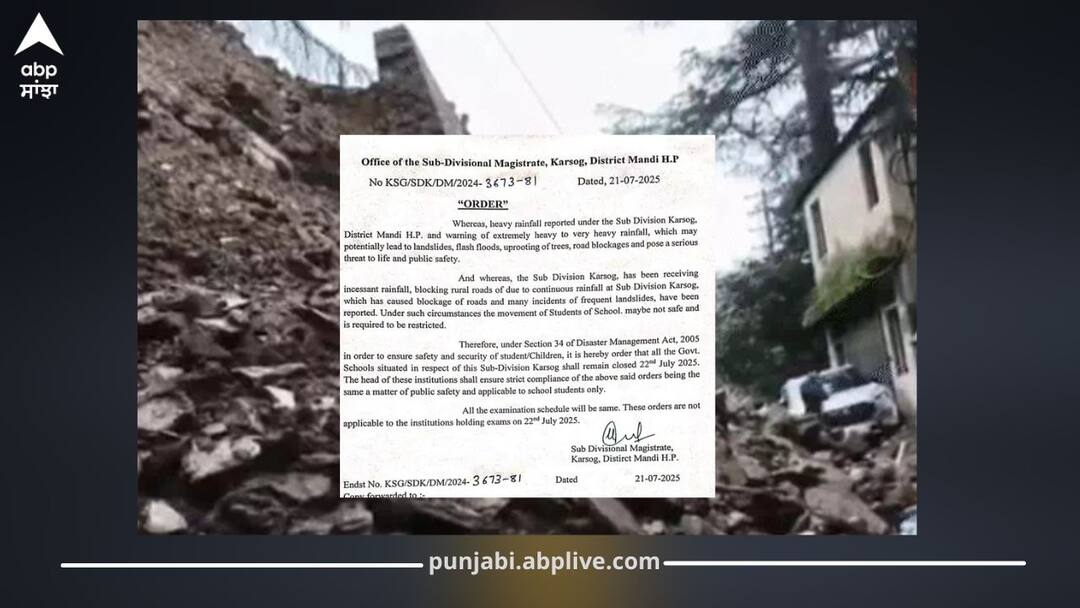 ਹਿਮਾਚਲ ਪ੍ਰਦੇਸ਼ ਦੇ 2 ਜ਼ਿਲ੍ਹਿਆਂ ਵਿੱਚ ਅੱਜ (ਮੰਗਲਵਾਰ) ਭਾਰੀ ਮੀਂਹ ਦੀ ਭਵਿੱਖਬਾਣੀ ਕੀਤੀ ਗਈ ਹੈ। ਇਸ ਨੂੰ ਧਿਆਨ ਵਿੱਚ ਰੱਖਦੇ ਹੋਏ ਮੰਡੀ ਜ਼ਿਲ੍ਹੇ ਦੇ ਕਰਸੋਗ ਅਤੇ ਸੁੰਦਰਨਗਰ ਸਬ ਡਿਵੀਜ਼ਨ ਵਿੱਚ ਐਸ.ਡੀ.ਐਮ. ਵਲੋਂ ਸਾਰੇ ਸਿੱਖਿਆ ਸੰਸਥਾਨਾਂ ਵਿੱਚ ਵਿਦਿਆਰਥੀਆਂ ਲਈ ਅੱਜ ਛੁੱਟੀ ਐਲਾਨੀ ਗਈ ਹੈ। ਹਾਲਾਂਕਿ ਸੁੰਦਰਨਗਰ ਵਿੱਚ ਨਾਨ-ਟੀਚਿੰਗ ਸਟਾਫ਼ ਨੂੰ ਸਕੂਲ ਆਉਣ ਲਈ ਕਿਹਾ ਗਿਆ ਹੈ।