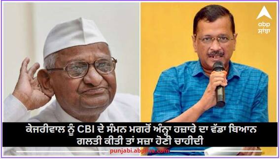 Delhi Excise policy News: ਕੇਂਦਰੀ ਜਾਂਚ ਬਿਊਰੋ (ਸੀਬੀਆਈ) ਵੱਲੋਂ ਆਮ ਆਦਮੀ ਪਾਰਟੀ ਦੇ ਸੁਪਰੀਮੋ ਅਰਵਿੰਦ ਕੇਜਰੀਵਾਲ ਨੂੰ ਪੁੱਛਗਿੱਛ ਲਈ ਸੰਮਨ ਜਾਰੀ ਕੀਤੇ ਜਾਣ ਤੋਂ ਬਾਅਦ ਸਮਾਜ ਸੇਵਕ ਅੰਨਾ ਹਜ਼ਾਰੇ ਦੀ ਪਹਿਲੀ ਪ੍ਰਤੀਕਿਰਿਆ ਸਾਹਮਣੇ ਆਈ ਹੈ। ਅੰਨਾ ਹਜ਼ਾਰੇ ਨੇ ਆਪਣੇ ਜਵਾਬ 'ਚ ਕਿਹਾ ਹੈ ਕਿ ਇਸ ਮਾਮਲੇ 'ਚ ਕੁਝ ਨਾ ਕੁਝ ਜ਼ਰੂਰ ਹੈ। ਕਮੀ ਤਾਂ ਨਜ਼ਰ ਆ ਰਹੀ ਹੈ, ਇਸ ਲਈ ਜਾਂਚ ਹੋਵੇਗੀ। ਗਲਤੀ ਕੀਤੀ ਹੈ ਤਾਂ ਸਜ਼ਾ ਹੋਣੀ ਚਾਹੀਦੀ ਹੈ।