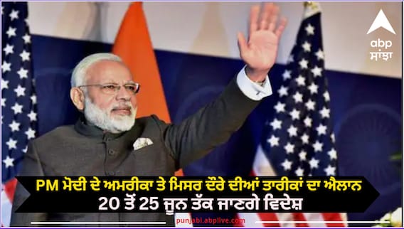 PM Modi USA Visit: ਪ੍ਰਧਾਨ ਮੰਤਰੀ ਨਰਿੰਦਰ ਮੋਦੀ 20 ਤੋਂ 25 ਜੂਨ ਤੱਕ ਅਮਰੀਕਾ ਤੇ ਮਿਸਰ ਦਾ ਦੌਰਾ ਕਰਨਗੇ। ਵਿਦੇਸ਼ ਮੰਤਰਾਲੇ ਨੇ ਅੱਜ ਇਹ ਜਾਣਕਾਰੀ ਦਿੱਤੀ। ਪੀਐਮ ਮੋਦੀ 22 ਜੂਨ ਨੂੰ ਵਾਸ਼ਿੰਗਟਨ ਵਿੱਚ ਅਮਰੀਕੀ ਰਾਸ਼ਟਰਪਤੀ ਜੋਅ ਬਾਇਡਨ ਨਾਲ ਮੁਲਾਕਾਤ ਕਰਨਗੇ। ਅਮਰੀਕੀ ਰਾਸ਼ਟਰਪਤੀ ਤੇ ਪ੍ਰਥ ਮਹਿਲਾ ਜਿਲ ਬਾਇਡਨ 22 ਜੂਨ ਨੂੰ ਪ੍ਰਧਾਨ ਮੰਤਰੀ ਮੋਦੀ ਦੇ ਸਨਮਾਨ ਵਿੱਚ ਰਾਤ ਦੇ ਖਾਣੇ ਦੀ ਮੇਜ਼ਬਾਨੀ ਕਰਨਗੇ।
