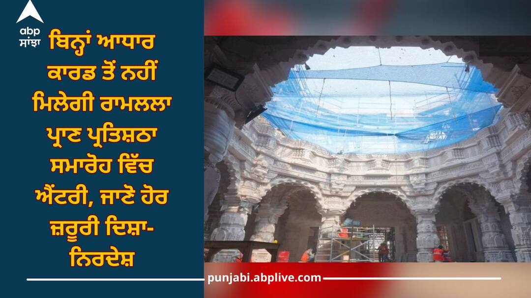 Ayodhya's Ram Mandir: ਰਾਮਲਲਾ ਪ੍ਰਾਣ ਪ੍ਰਤਿਸ਼ਠਾ ਸਮਾਰੋਹ ਲੈ ਕੇ ਵੱਡੀ ਅਪਡੇਟ ਸਾਹਮਣੇ ਆਈ ਹੈ। ਮਿਲੀ ਜਾਣਕਾਰੀ ਅਨੁਸਾਰ ਸਮਾਗਮ ਵਿੱਚ ਬੁਲਾਏ ਗਏ ਮਹਿਮਾਨਾਂ ਲਈ ਆਧਾਰ ਕਾਰਡ ਲਿਆਉਣਾ ਜ਼ਰੂਰੀ ਹੋਵੇਗਾ।