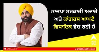ਚੰਡੀਗੜ੍ਹ: ਗੁਜਰਾਤ ਦੌਰੇ 'ਤੇ ਗਏ ਪੰਜਾਬ ਦੇ ਮੁੱਖ ਮੰਤਰੀ ਭਗਵੰਤ ਮਾਨ ਨੇ ਭਾਜਪਾ ਅਤੇ ਕਾਂਗਰਸ 'ਤੇ ਤਿੱਖੇ ਹਮਲੇ ਕੀਤੇ। ਉਨ੍ਹਾਂ ਕਿਹਾ ਕਿ ਭਾਜਪਾ ਸਰਕਾਰੀ ਅਦਾਰੇ ਵੇਚ ਰਹੀ ਹੈ ਅਤੇ ਉੱਧਰ ਕਾਂਗਰਸ ਨੇ ਆਪਣੇ ਵਿਧਾਇਕਾਂ ਨੂੰ ਸੇਲ 'ਤੇ ਲਾਇਆ ਹੈ। ਭਾਜਪਾ ਆਪਣੀ ਸਰਕਾਰ ਬਣਾਉਣ ਲਈ ਦੇਸ਼ ਵੇਚ ਕੇ ਕਾਂਗਰਸੀ ਵਿਧਾਇਕਾਂ ਨੂੰ ਖਰੀਦ ਰਹੀ ਹੈ।