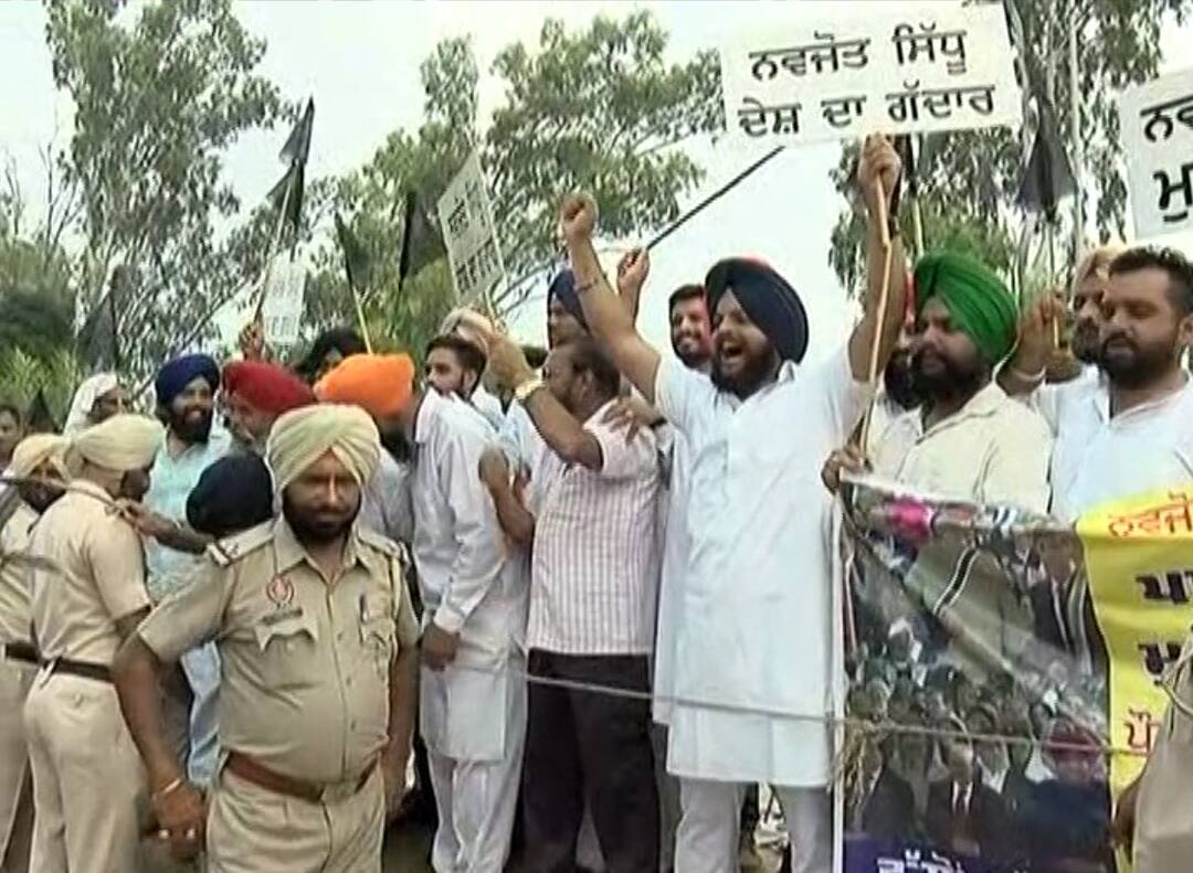 ਪਾਕਿਸਤਾਨੋਂ ਪਰਤੇ ਸਿੱਧੂ ਦਾ ਕਾਲੀਆਂ ਝੰਡੀਆਂ ਨਾਲ ਸਵਾਗਤ