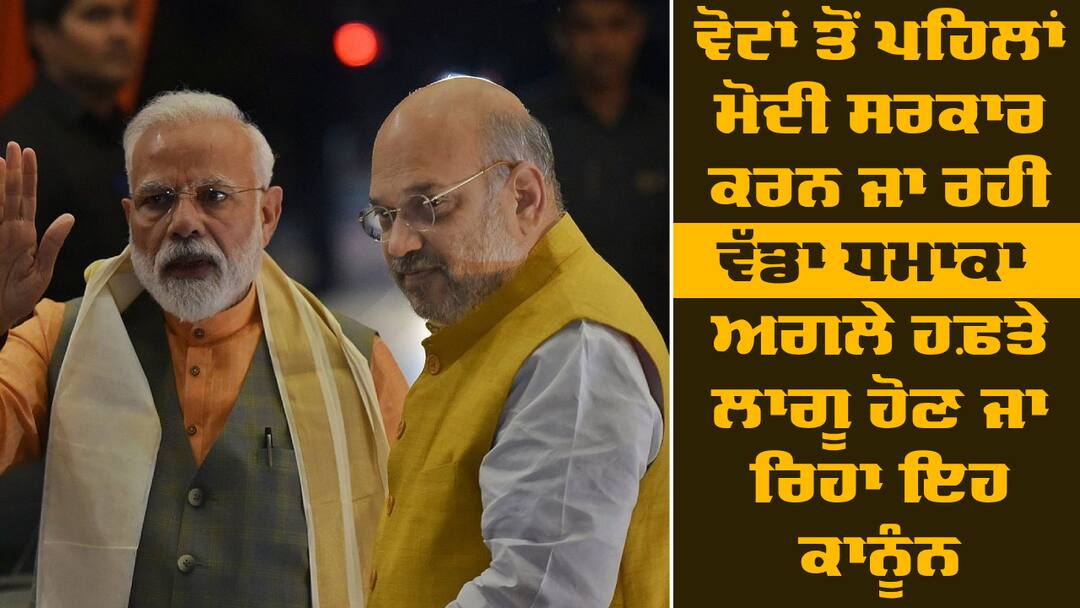 CAA to be implemented across India: ਲੋਕ ਸਭਾ ਚੋਣਾਂ ਤੋਂ ਪਹਿਲਾਂ ਮੋਦੀ ਸਰਕਾਰ ਵੱਡਾ ਧਮਾਕਾ ਕਰਨ ਜਾ ਰਹੀ ਹੈ। ਨਾਗਰਿਕਤਾ ਸੋਧ ਕਾਨੂੰਨ (CAA) 2019 ਨੂੰ ਕੇਂਦਰ ਸਰਕਾਰ ਲਾਗੂ ਕਰਨ ਜਾ ਰਹੀ ਹੈ। ਇਸ ਤੋਂ ਪਹਿਲਾਂ ਨਾਗਰਿਕਤਾ ਸੋਧ ਕਾਨੂੰਨ ਖਿਲਾਫ਼ ਦੇਸ਼ ਭਰ ਵਿੱਚ ਵਿਰੋਧ ਉੱਠ ਗਿਆ ਸੀ ਜਿਸ ਕਰਕੇ ਸਰਕਾਰ ਨੇ ਇਸ ਨੂੰ ਲਾਗੂ ਨਹੀਂ ਕੀਤਾ ਸੀ।