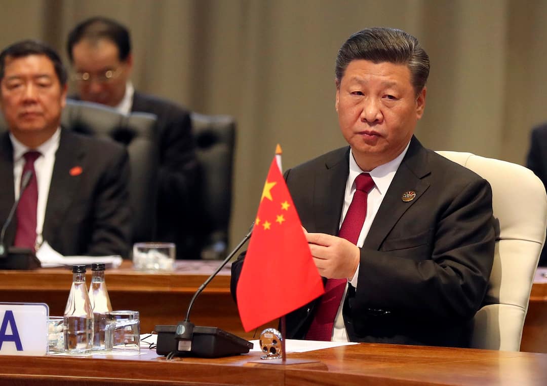 China's President Xi Jinping takes his seat for the first closed session of the BRICS summit, in Johannesburg, South Africa, Thursday, July 26, 2018. The five leaders of the BRICS emerging economies have gathered in South Africa for an annual summit where the United States is being criticized for escalating tariffs on foreign goods. (Mike Hutchings/Pool Photo via AP)