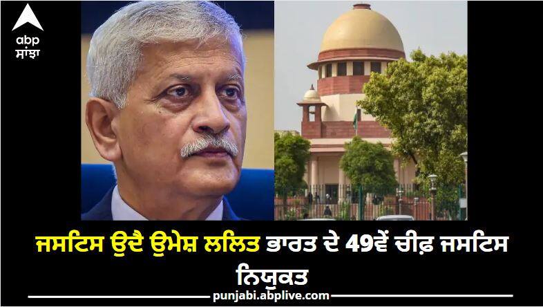 CJI UU Lalit Profile: ਰਾਸ਼ਟਰਪਤੀ ਦ੍ਰੋਪਦੀ ਮੁਰਮੂ ਦੇ ਨਿਯੁਕਤੀ ਵਾਰੰਟ 'ਤੇ ਹਸਤਾਖਰ ਕਰਨ ਤੋਂ ਬਾਅਦ ਬੁੱਧਵਾਰ ਨੂੰ ਜਸਟਿਸ ਉਦੈ ਉਮੇਸ਼ ਲਲਿਤ ਨੂੰ ਭਾਰਤ ਦੇ 49ਵੇਂ ਚੀਫ਼ ਜਸਟਿਸ ਵਜੋਂ ਨਿਯੁਕਤ ਕੀਤਾ ਗਿਆ ਸੀ। 27 ਅਗਸਤ ਨੂੰ ਉਹ ਆਪਣੇ ਅਹੁਦੇ ਦੀ ਸਹੁੰ ਚੁੱਕਣਗੇ।
