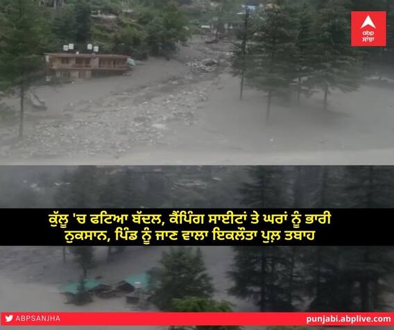 ਕੁੱਲੂ 'ਚ ਫਟਿਆ ਬੱਦਲ 4 ਲੋਕ ਰੁੜੇ, ਕੈਂਪਿੰਗ ਸਾਈਟਾਂ ਤੇ ਘਰਾਂ ਨੂੰ ਭਾਰੀ ਨੁਕਸਾਨ, ਪਿੰਡ ਨੂੰ ਜਾਣ ਵਾਲਾ ਇਕਲੌਤਾ ਪੁਲ਼ ਤਬਾਹ