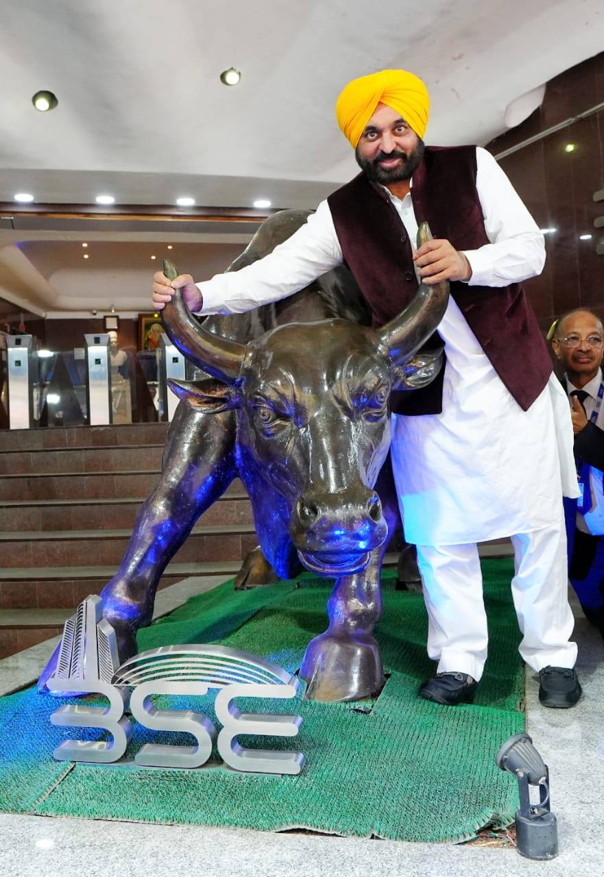 Punjab News: ਪੰਜਾਬ ਦੇ ਮੁੱਖ ਮੰਤਰੀ ਭਗਵੰਤ ਮਾਨ ਨੇ ਮੰਗਲਵਾਰ ਨੂੰ ਬੰਬਈ ਸਟਾਕ ਐਕਸਚੇਂਜ (ਬੀ.ਐਸ.ਈ.) ਦਾ ਦੌਰਾ ਕੀਤਾ ਅਤੇ ਸੂਬੇ ਨੂੰ ਦੇਸ਼ ਭਰ ਵਿੱਚ ਨਿਵੇਸ਼ ਲਈ ਸਭ ਤੋਂ ਪਸੰਦੀਦਾ ਸਥਾਨ ਵਜੋਂ ਦਰਸਾਇਆ। ਮੁੱਖ ਮੰਤਰੀ ਨੇ ਅੱਜ ਇੱਥੇ ਬੀ.ਐਸ.ਈ. ਵਿਖੇ ਘੰਟੀ ਵਜਾਉਣ (ਮਾਰਕੀਟ ਖੁੱਲ੍ਹਣ ਦਾ ਸੰਕੇਤ) ਦੀ ਰਸਮ ਅਦਾ ਕਰਨ ਮਗਰੋਂ ਪੱਤਰਕਾਰਾਂ ਨਾਲ ਗੱਲਬਾਤ ਕਰਦਿਆਂ ਪੰਜਾਬ ਨੂੰ ਕਾਰੋਬਾਰ ਲਈ ਅਥਾਹ ਮੌਕਿਆਂ ਦੀ ਧਰਤੀ ਵਜੋਂ ਦਰਸਾਇਆ ਅਤੇ ਕੰਪਨੀਆਂ ਨੂੰ ਸੂਬੇ ਵਿੱਚ ਨਿਵੇਸ਼ ਕਰਨ ਦਾ ਸੱਦਾ ਦਿੱਤਾ। ਉਨ੍ਹਾਂ ਕਿਹਾ ਕਿ ਦੇਸ਼ ਦੇ ਉਦਯੋਗਿਕ ਧੁਰੇ ਵਜੋਂ ਤੇਜ਼ੀ ਨਾਲ ਉੱਭਰ ਰਹੇ ਪੰਜਾਬ ਵਿੱਚ ਨਿਵੇਸ਼ ਕਰਨ ਨਾਲ ਉੱਦਮੀਆਂ ਨੂੰ ਵਡੇਰਾ ਲਾਭ ਹੋਵੇਗਾ। ਭਗਵੰਤ ਮਾਨ ਨੇ ਕਿਹਾ ਕਿ ਪੰਜਾਬ ਵਿੱਚ ਸੰਪੂਰਨ ਭਾਈਚਾਰਕ ਸਾਂਝ, ਸ਼ਾਂਤੀ ਅਤੇ ਸਦਭਾਵਨਾ ਹੈ, ਜੋ ਸੂਬੇ ਦੇ ਸਰਵਪੱਖੀ ਵਿਕਾਸ ਅਤੇ ਖ਼ੁਸ਼ਹਾਲੀ ਲਈ ਮੁੱਖ ਤੌਰ 'ਤੇ ਜ਼ਿੰਮੇਵਾਰ ਹੈ। ਮੁੱਖ ਮੰਤਰੀ ਨੇ ਉਦਯੋਗਪਤੀਆਂ ਨੂੰ ਆਪਣੇ ਕਾਰੋਬਾਰ ਨੂੰ ਫੈਲਾਉਣ ਲਈ ਵਧੀਆ ਬੁਨਿਆਦੀ ਢਾਂਚੇ, ਢੁਕਵੀਂ ਬਿਜਲੀ ਸਪਲਾਈ, ਹੁਨਰਮੰਦ ਮਨੁੱਖੀ ਵਸੀਲਿਆਂ ਅਤੇ ਬਿਹਤਰੀਨ ਉਦਯੋਗਿਕ ਤੇ ਕੰਮਕਾਜੀ ਸੱਭਿਆਚਾਰ ਨਾਲ ਭਰਪੂਰ ਅਨੁਕੂਲ ਮਾਹੌਲ ਦਾ ਵੱਧ ਤੋਂ ਵੱਧ ਲਾਹਾ ਲੈਣ ਦੀ ਅਪੀਲ ਕੀਤੀ। ਸਨਅਤਕਾਰਾਂ ਦਾ ਪੰਜਾਬ ਵਿੱਚ ਸਵਾਗਤ ਕਰਦਿਆਂ ਉਨ੍ਹਾਂ ਕਿਹਾ ਕਿ ਸੂਬਾ ਸਰਕਾਰ ਪੰਜਾਬ ਵਿੱਚ ਉਦਯੋਗਿਕ ਵਿਕਾਸ ਨੂੰ ਹੁਲਾਰਾ ਦੇਣ ਲਈ ਨਵੇਂ ਵਿਚਾਰਾਂ ਅਤੇ ਨਵੀਆਂ ਖੋਜਾਂ ਲਈ ਹਮੇਸ਼ਾ ਤਿਆਰ ਹੈ। ਭਗਵੰਤ ਮਾਨ ਨੇ ਕਿਹਾ ਕਿ ਉਹ ਦਿਨ ਦੂਰ ਨਹੀਂ, ਜਦੋਂ ਪੰਜਾਬ ਦੇਸ਼ ਦਾ ਉਦਯੋਗਿਕ ਧੁਰਾ ਬਣ ਕੇ ਉਭਰੇਗਾ।