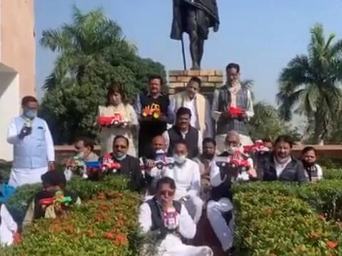 ਦਰਅਸਲ ਜ਼ਿਲ੍ਹਾ ਪ੍ਰਸ਼ਾਸਨ ਨੇ ਵਿਧਾਨਸਭਾ ਤੋਂ ਪੰਜ ਕਿਲੋਮੀਟਰ ਦੇ ਘੇਰੇ 'ਚ ਟ੍ਰੈਕਟਰ-ਟਰਾਲੀ ਤੇ ਟਰੱਕ ਸਮੇਤ ਭਾਰੀ ਵਾਹਨਾਂ 'ਤੇ ਪਾਬੰਦੀ ਲਾ ਦਿੱਤੀ ਹੈ। ਇਸ ਨਾਲ ਨਵੇਂ ਖੇਤੀ ਕਾਨੂੰਨਾਂ ਤੇ ਪੈਟਰੋਲ, ਡੀਜ਼ਲ ਸਮੇਤ ਰਸੋਈ ਗੈਸ ਦੀਆਂ ਕੀਮਤਾਂ ਖਿਲਾਫ ਮੱਧ ਪ੍ਰਦੇਸ਼ ਕਾਂਗਰਸ ਵਿਧਾਇਕ ਦਲ ਦੇ ਮੈਂਬਰਾਂ ਨੇ ਸੋਮਵਾਰ ਨੂੰ ਟ੍ਰੈਕਟਰਾਂ 'ਤੇ ਬੈਠ ਕੇ ਪ੍ਰਦਰਸ਼ਨ ਕਰਦਿਆਂ ਵਿਧਾਨ ਸਭਾ ਸੈਸਨ 'ਚ ਪਹੁੰਚਣ ਦੀ ਯੋਜਨਾ 'ਤੇ ਪਾਣੀ ਫਿਰ ਗਿਆ। ਇਸ ਤੋਂ ਬਾਅਦ ਹੀ ਕਾਂਗਰਸ ਲੀਡਰਾਂ ਨੇ ਟ੍ਰੈਕਟਰ ਖਿਡੌਣੇ ਲੈਕੇ ਪ੍ਰਦਰਸ਼ਨ ਕੀਤਾ।