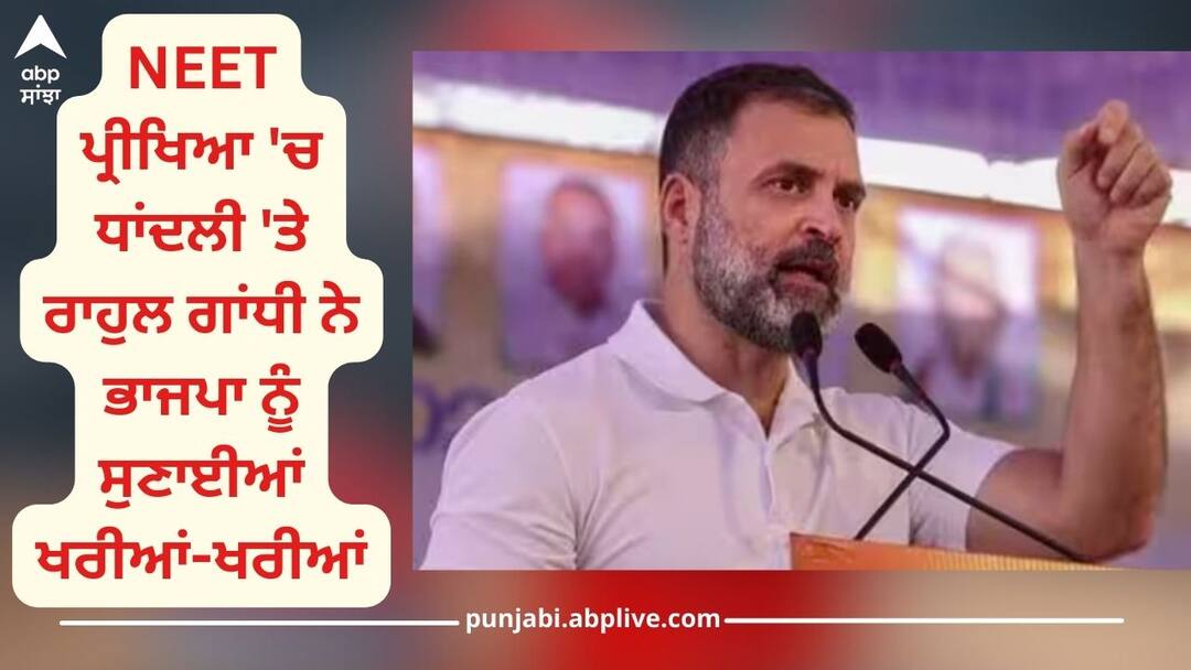 Rahul Gandhi Attack on BJP: NEET UG 2024 ਪ੍ਰੀਖਿਆ ਦੇ ਨਤੀਜਿਆਂ ਤੋਂ ਬਾਅਦ ਦੇਸ਼ ਦੇ ਵਿੱਚ ਹਾਹਾਕਾਰ ਮੱਚੀ ਪਈ ਹੈ। ਕਾਂਗਰਸ ਵੀ NEET ਪ੍ਰੀਖਿਆ 'ਚ ਧਾਂਦਲੀ ਨੂੰ ਲੈ ਕੇ ਕੇਂਦਰ ਸਰਕਾਰ 'ਤੇ ਲਗਾਤਾਰ ਹਮਲੇ ਕਰ ਰਹੀ ਹੈ। ਹੁਣ ਇਸ ਮੁੱਦੇ 'ਤੇ ਕਾਂਗਰਸ ਨੇਤਾ ਰਾਹੁਲ ਗਾਂਧੀ ਨੇ ਵੀ ਕੇਂਦਰ ਦੀ ਮੋਦੀ ਸਰਕਾਰ 'ਤੇ ਨਿਸ਼ਾਨਾ ਸਾਧਿਆ ਹੈ। ਰਾਹੁਲ ਗਾਂਧੀ ਨੇ ਕਿਹਾ, ਪੀਐਮ ਮੋਦੀ ਇਸ ਮੁੱਦੇ 'ਤੇ ਚੁੱਪ ਹਨ ਅਤੇ ਭਾਜਪਾ ਸ਼ਾਸਤ ਰਾਜ ਪੇਪਰ ਲੀਕ ਦਾ ਕੇਂਦਰ ਬਣ ਗਏ ਹਨ।