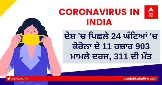 Coronavirus Cases Today: ਦੇਸ਼ ਵਿੱਚ ਕੋਰੋਨਾ ਵਾਇਰਸ (ਕੋਵਿਡ 19) ਦਾ ਪ੍ਰਕੋਪ ਅਜੇ ਵੀ ਜਾਰੀ ਹੈ। ਦੇਸ਼ ਵਿੱਚ ਅਜੇ ਵੀ ਵੱਡੀ ਗਿਣਤੀ ਵਿੱਚ ਮੌਤਾਂ ਹੋ ਰਹੀਆਂ ਹਨ। ਪਿਛਲੇ 24 ਘੰਟਿਆਂ 'ਚ ਕੋਰੋਨਾ ਦੇ 11 ਹਜ਼ਾਰ 903 ਨਵੇਂ ਮਾਮਲੇ ਸਾਹਮਣੇ ਆਏ। ਇਸ ਦੇ ਨਾਲ ਹੀ ਕੱਲ੍ਹ 311 ਲੋਕਾਂ ਦੀ ਮੌਤ ਹੋ ਗਈ ਸੀ, ਜਿਸ ਤੋਂ ਬਾਅਦ ਮਰਨ ਵਾਲਿਆਂ ਦੀ ਗਿਣਤੀ 4 ਲੱਖ 59 ਹਜ਼ਾਰ 191 ਹੋ ਗਈ ਹੈ। ਜਾਣੋ ਦੇਸ਼ ਵਿੱਚ ਕੋਰੋਨਾ ਵਾਇਰਸ ਦੀ ਤਾਜ਼ਾ ਸਥਿਤੀ ਕੀ ਹੈ।