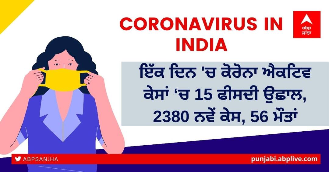 Covid 19 Cases in India: ਭਾਰਤ ਵਿੱਚ ਕੋਰੋਨਾ ਦੇ ਮਾਮਲਿਆਂ ਵਿੱਚ ਇੱਕ ਵਾਰ ਫਿਰ 15 ਫੀਸਦੀ ਦਾ ਉਛਾਲ ਆਇਆ ਹੈ। ਵੀਰਵਾਰ ਨੂੰ ਦੇਸ਼ 'ਚ ਪਿਛਲੇ 24 ਘੰਟਿਆਂ 'ਚ ਕੋਰੋਨਾ ਦੇ 2,380 ਨਵੇਂ ਮਾਮਲੇ ਦਰਜ ਕੀਤੇ ਗਏ। ਦੇਸ਼ ਵਿਆਪੀ ਟੀਕਾਕਰਨ ਮੁਹਿੰਮ ਤਹਿਤ ਹੁਣ ਤੱਕ 187.07 ਕਰੋੜ ਟੀਕੇ ਦੀਆਂ ਖੁਰਾਕਾਂ ਦਿੱਤੀਆਂ ਜਾ ਚੁੱਕੀਆਂ ਹਨ। ਇਸ ਸਮੇਂ ਦੇਸ਼ ਵਿੱਚ ਐਕਟਿਵ ਕੇਸ 13,433 ਹਨ। ਰਿਕਵਰੀ ਦਰ ਵਰਤਮਾਨ ਵਿੱਚ 98.76% ਹੈ।