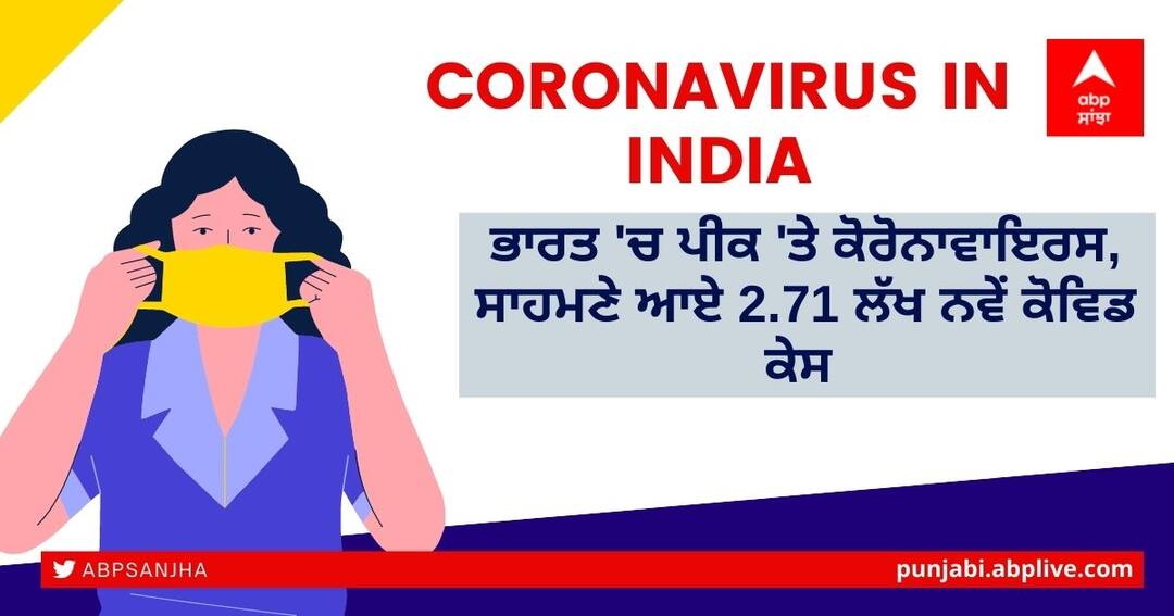 Covid 19 Cases: ਦੇਸ਼ ਵਿੱਚ ਲਗਾਤਾਰ ਚੌਥੇ ਦਿਨ ਕੋਰੋਨਾ ਦੇ ਦੋ ਲੱਖ ਤੋਂ ਵੱਧ ਨਵੇਂ ਮਾਮਲੇ ਸਾਹਮਣੇ ਆਏ ਹਨ। ਹਾਲਾਂਕਿ, ਲਾਗ ਦੀ ਦਰ ਅਤੇ ਮੌਤਾਂ ਦੀ ਗਿਣਤੀ ਵਿੱਚ ਕਮੀ ਆਈ ਹੈ। ਭਾਰਤ 'ਚ ਇੱਕ ਦਿਨ ਵਿੱਚ 2,71,202 ਸੰਕਰਮਿਤ ਪਾਏ ਗਏ, ਜਦੋਂ ਕਿ 314 ਦੀ ਮੌਤ ਹੋ ਗਈ। ਇਸ ਦੇ ਨਾਲ ਹੀ ਦੇਸ਼ 'ਚ ਸੰਕਰਮਣ ਦੀ ਦਰ 16.28 ਫੀਸਦੀ ਰਹੀ। ਦੱਸ ਦਈਏ ਕਿ ਇਸ ਤੋਂ ਇੱਕ ਦਿਨ ਪਹਿਲਾਂ ਇਹ ਦਰ 16.66 ਪ੍ਰਤੀਸ਼ਤ ਸੀ ਅਤੇ ਕੋਰੋਨਾ ਨਾਲ ਮਰਨ ਵਾਲਿਆਂ ਦੀ ਗਿਣਤੀ 402 ਸੀ।