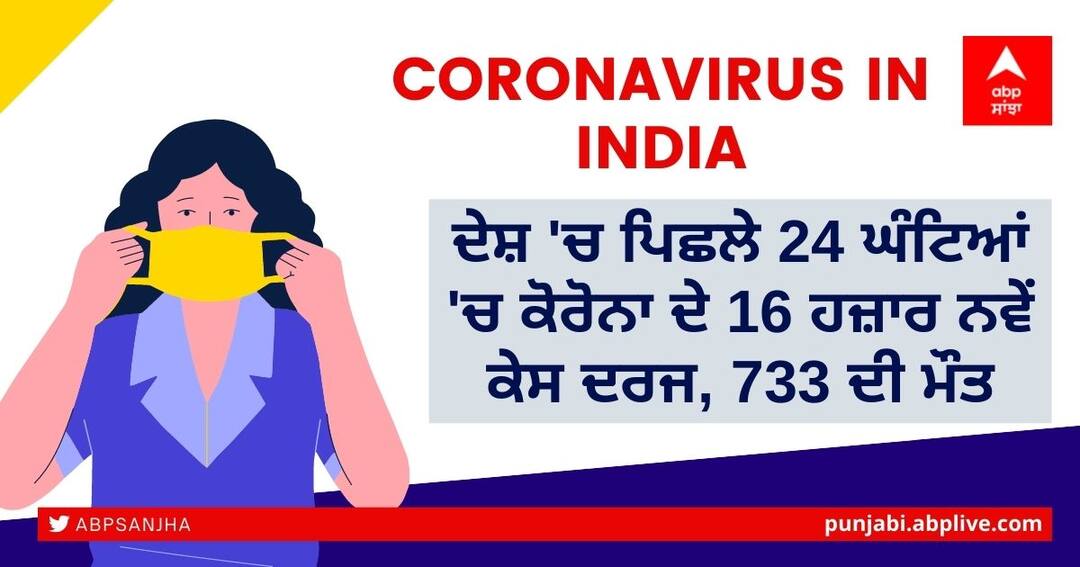 Covid 19 in India: ਦੇਸ਼ ਵਿੱਚ ਘਾਤਕ ਕੋਰੋਨਾ ਵਾਇਰਸ (Covid-19) ਦਾ ਪ੍ਰਕੋਪ ਅਜੇ ਵੀ ਜਾਰੀ ਹੈ। ਦੇਸ਼ ਵਿੱਚ ਅਜੇ ਵੀ ਵੱਡੀ ਗਿਣਤੀ ਵਿੱਚ ਮੌਤਾਂ ਹੋ ਰਹੀਆਂ ਹਨ। ਪਿਛਲੇ 24 ਘੰਟਿਆਂ 'ਚ ਕੋਰੋਨਾ ਦੇ 16 ਹਜ਼ਾਰ 156 ਨਵੇਂ ਮਾਮਲੇ ਸਾਹਮਣੇ ਆਏ ਹਨ। ਇਸ ਦੇ ਨਾਲ ਹੀ ਕੱਲ੍ਹ 733 ਲੋਕਾਂ ਦੀ ਮੌਤ ਹੋ ਗਈ ਸੀ, ਜਿਸ ਤੋਂ ਬਾਅਦ ਮਰਨ ਵਾਲਿਆਂ ਦੀ ਗਿਣਤੀ 4 ਲੱਖ 56 ਹਜ਼ਾਰ 386 ਹੋ ਗਈ ਹੈ। ਜਾਣੋ ਦੇਸ਼ ਵਿੱਚ ਕੋਰੋਨਾ ਵਾਇਰਸ ਦੀ ਤਾਜ਼ਾ ਸਥਿਤੀ ਕੀ ਹੈ।