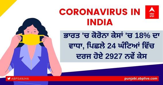 Coronavirus Update Topday in India on 27th April 2022: ਭਾਰਤ 'ਚ ਇੱਕ ਵਾਰ ਫਿਰ ਕੋਰੋਨਾ ਦੇ ਮਾਮਲਿਆਂ 'ਚ ਤੇਜ਼ੀ ਦੇਖਣ ਨੂੰ ਮਿਲੀ ਹੈ। ਸਿਹਤ ਮੰਤਰਾਲੇ ਵੱਲੋਂ ਬੁੱਧਵਾਰ ਨੂੰ ਜਾਰੀ ਕੀਤੇ ਗਏ ਅੰਕੜਿਆਂ ਮੁਤਾਬਕ ਪਿਛਲੇ 24 ਘੰਟਿਆਂ 'ਚ ਸੰਕਰਮਣ ਦੇ ਮਾਮਲਿਆਂ 'ਚ ਕਰੀਬ 18 ਫੀਸਦੀ ਦਾ ਉਛਾਲ ਆਇਆ ਹੈ। ਜਾਰੀ ਰਿਪੋਰਟ ਮੁਤਾਬਕ 24 ਘੰਟਿਆਂ 'ਚ 2,927 ਨਵੇਂ ਮਾਮਲੇ ਸਾਹਮਣੇ ਆਏ ਹਨ। ਇਸ ਦੌਰਾਨ ਦੇਸ਼ ਵਿੱਚ ਕੋਵਿਡ-19 ਕਾਰਨ 32 ਲੋਕਾਂ ਦੀ ਮੌਤ ਹੋ ਗਈ ਹੈ।