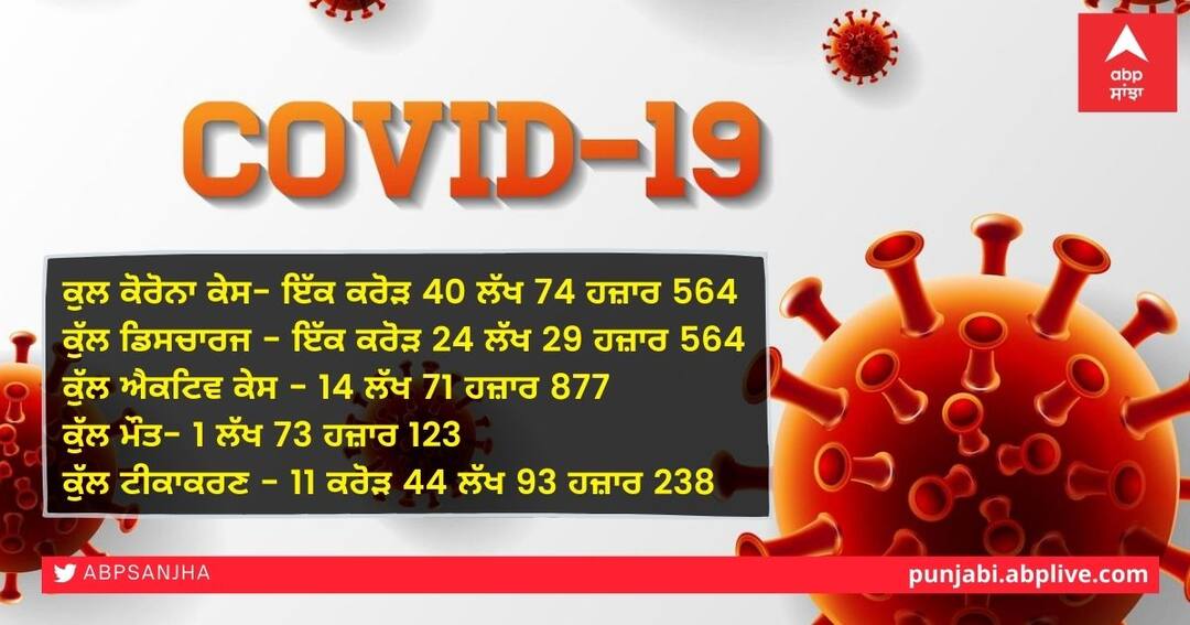ਕੁਲ ਕੋਰੋਨਾ ਕੇਸ- ਇੱਕ ਕਰੋੜ 40 ਲੱਖ 74 ਹਜ਼ਾਰ 564