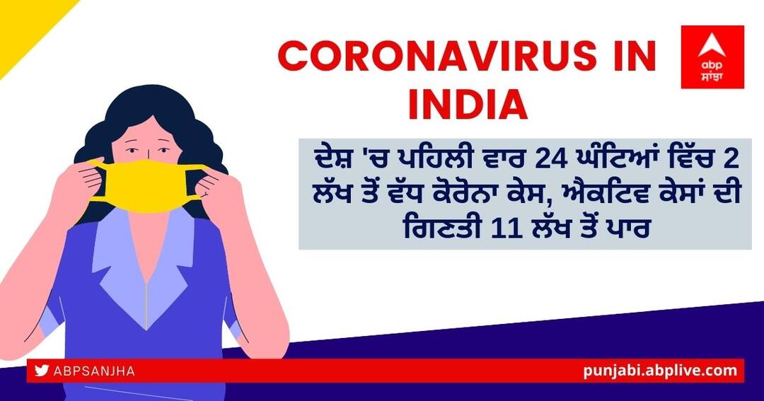 Coronavirus Update in India: ਦੇਸ਼ ਵਿੱਚ ਪਹਿਲੀ ਵਾਰ ਤੀਜੀ ਲਹਿਰ ਦੇ ਵਿਚਕਾਰ 24 ਘੰਟਿਆਂ ਵਿੱਚ ਕੋਰੋਨਾ ਵਾਇਰਸ ਦੇ 2 ਲੱਖ ਤੋਂ ਵੱਧ ਮਾਮਲੇ ਸਾਹਮਣੇ ਆਏ ਹਨ। ਵੀਰਵਾਰ ਰਾਤ 12 ਵਜੇ ਤੱਕ ਕੁੱਲ 245,525 ਕੋਵਿਡ ਮਾਮਲੇ ਅਤੇ 379 ਮੌਤਾਂ ਦਰਜ ਕੀਤੀਆਂ ਗਈਆਂ। ਇਸ ਦੌਰਾਨ 84,479 ਲੋਕ ਠੀਕ ਵੀ ਹੋਏ ਹਨ। ਇਸ ਦੇ ਨਾਲ ਹੀ ਐਕਟਿਵ ਕੇਸਾਂ ਦੀ ਗਿਣਤੀ 1 ਲੱਖ 60 ਹਜ਼ਾਰ 667 ਵਧ ਗਈ ਹੈ। ਹੁਣ ਕੁੱਲ 11,098,05 ਐਕਟਿਵ ਕੇਸ ਹੋ ਗਏ ਹਨ।