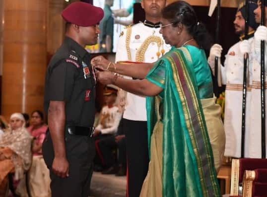 ਰਾਸ਼ਟਰਪਤੀ ਦ੍ਰੋਪਦੀ ਮੁਰਮੂ ਨੇ ਰਾਸ਼ਟਰਪਤੀ ਭਵਨ ਵਿੱਚ ਰੱਖਿਆ ਨਿਵੇਸ਼ ਸਮਾਰੋਹ ਵਿੱਚ ਬਹਾਦਰੀ ਪੁਰਸਕਾਰ ਪ੍ਰਦਾਨ ਕੀਤੇ। ਇਸ ਤੋਂ ਇਲਾਵਾ ਰਾਸ਼ਟਰਪਤੀ ਮੁਰਮੂ ਨੇ ਜੰਮੂ-ਕਸ਼ਮੀਰ ਰਾਈਫਲਜ਼ ਦੀ ਤੀਜੀ ਬਟਾਲੀਅਨ ਰਾਸ਼ਟਰੀ ਰਾਈਫਲਜ਼ 'ਚ ਤਾਇਨਾਤ ਲਾਂਸ ਨਾਇਕ ਵਿਕਾਸ ਚੌਧਰੀ ਨੂੰ ਸ਼ੌਰਿਆ ਚੱਕਰ ਭੇਟ ਕੀਤਾ। ਵਿਕਾਸ ਚੌਧਰੀ ਨੇ ਜੰਮੂ-ਕਸ਼ਮੀਰ ਦੇ ਅਨੰਤਨਾਗ 'ਚ ਅਪਰੇਸ਼ਨ ਦੌਰਾਨ ਬੇਮਿਸਾਲ ਬਹਾਦਰੀ ਦਿਖਾਉਂਦੇ ਹੋਏ ਅੱਤਵਾਦੀਆਂ ਦਾ ਖਾਤਮਾ ਕੀਤਾ ਸੀ।