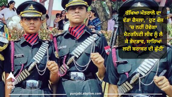 Maternity Leave in Armry: ਹਥਿਆਰਬੰਦ ਸੈਨਾਵਾਂ ਵਿੱਚ ਹੁਣ ਮੈਟਰਨਿਟੀ ਲੀਵ ਵਿੱਚ ਰੈਂਕ ਦਾ ਵਿਤਕਰਾ ਨਹੀਂ ਹੋਵੇਗਾ। ਮਹਿਲਾ ਸਿਪਾਹੀਆਂ, ਮਲਾਹਾਂ ਅਤੇ ਹਵਾਈ ਫੌਜੀਆਂ ਨੂੰ ਜਣੇਪਾ, ਬਾਲ ਦੇਖਭਾਲ ਅਤੇ ਬੱਚੇ ਨੂੰ ਕਾਨੂੰਨੀ ਗੋਦ ਲੈਣ ਲਈ ਅਧਿਕਾਰੀ ਦੇ ਬਰਾਬਰ ਛੁੱਟੀ ਮਿਲੇਗੀ।