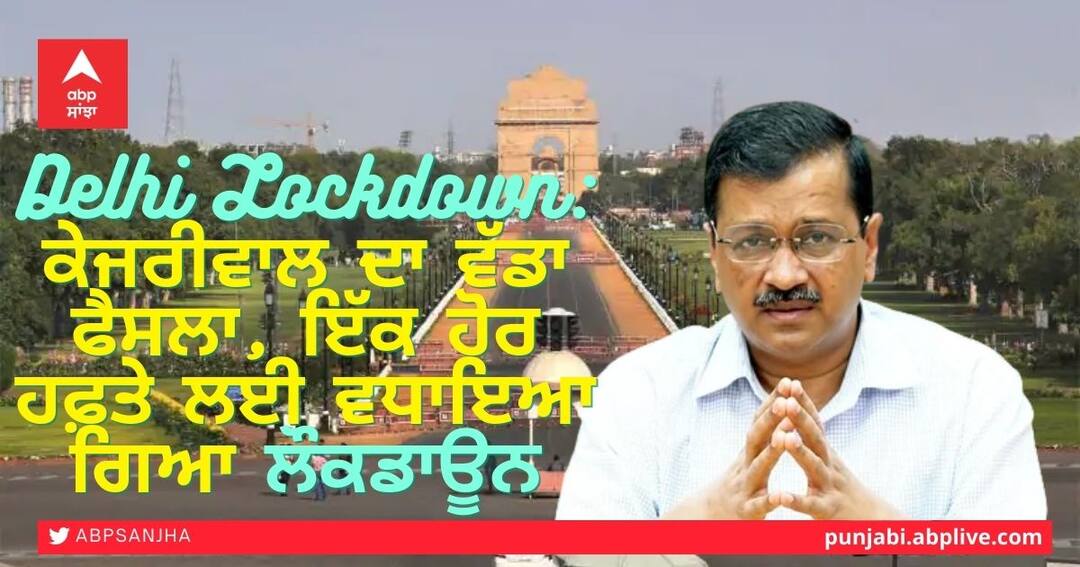 ਨਵੀਂ ਦਿੱਲੀ: ਕੋਰੋਨਾ ਮਾਮਲਿਆਂ ਵਿਚ ਹੋਏ ਵਾਧੇ ਦੇ ਵਿਚਕਾਰ ਦੇਸ਼ ਦੀ ਰਾਜਧਾਨੀ ਦਿੱਲੀ ਵਿਚ ਇਕ ਹਫ਼ਤੇ ਲਈ ਹੋਰ ਲੌਕਡਾਊਨ ਦਾ ਐਲਾਨ ਕੀਤਾ ਗਿਆ ਹੈ। ਸੀਐਮ ਅਰਵਿੰਦ ਕੇਜਰੀਵਾਲ ਨੇ ਐਤਵਾਰ ਨੂੰ ਇੱਕ ਪ੍ਰੈਸ ਕਾਨਫਰੰਸ ਵਿੱਚ ਇਸਦਾ ਐਲਾਨ ਕਰਦਿਆਂ ਕਿਹਾ ਕਿ ਇਹ ਲੌਕਡਾਊਨ ਅਗਲੇ ਸੋਮਵਾਰ ਯਾਨੀ ਪੰਜ ਮਈ ਨੂੰ ਸਵੇਰੇ 5 ਵਜੇ ਤੱਕ ਵਧਾ ਦਿੱਤਾ ਗਿਆ ਹੈ। ਉਨ੍ਹਾਂ ਕਿਹਾ ਕਿ ਕੋਰੋਨਾ ਨੂੰ ਕਾਬੂ ਕਰਨ ਲਈ ਇੱਕ ਇਹੀ ਆਪਸ਼ਨ ਹੈ।
