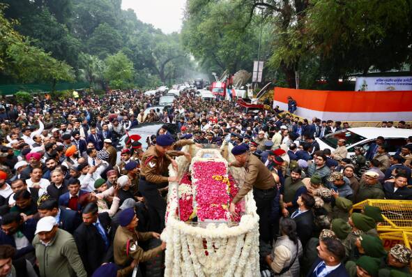 Manmohan Singh Last Rites: ਸਾਬਕਾ ਪ੍ਰਧਾਨ ਮੰਤਰੀ ਡਾ. ਮਨਮੋਹਨ ਸਿੰਘ 92 ਸਾਲ ਦੀ ਉਮਰ ਵਿੱਚ ਇਸ ਸੰਸਾਰ ਨੂੰ ਅਲਵਿਦਾ ਕਹਿ ਗਏ। ਦਿੱਲੀ ਵਿੱਚ ਸਰਕਾਰੀ ਸਨਮਾਨਾਂ ਨਾਲ ਉਹਨਾਂ ਦਾ ਅਤਿੰਮ ਸਸਕਾਰ ਕੀਤਾ ਗਿਆ। ਇਸ ਤੋਂ ਪਹਿਲਾਂ ਉਹਨਾਂ ਨੂੰ ਕਾਂਗਰਸ ਦਫ਼ਤਰ ਵਿਖੇ ਸ਼ਰਧਾਂਜਲੀਆਂ ਭੇਂਟ ਕੀਤੀਆਂ ਗਈਆਂ। ਜਿੱਥੇ ਦੇਸ਼ ਭਰ ਦੇ ਕਾਂਗਰਸੀ ਲੀਡਰਾਂ ਨੇ ਉਹਨਾਂ ਦੇ ਆਖਰੀ ਦਰਸ਼ਨ ਕੀਤੇ।