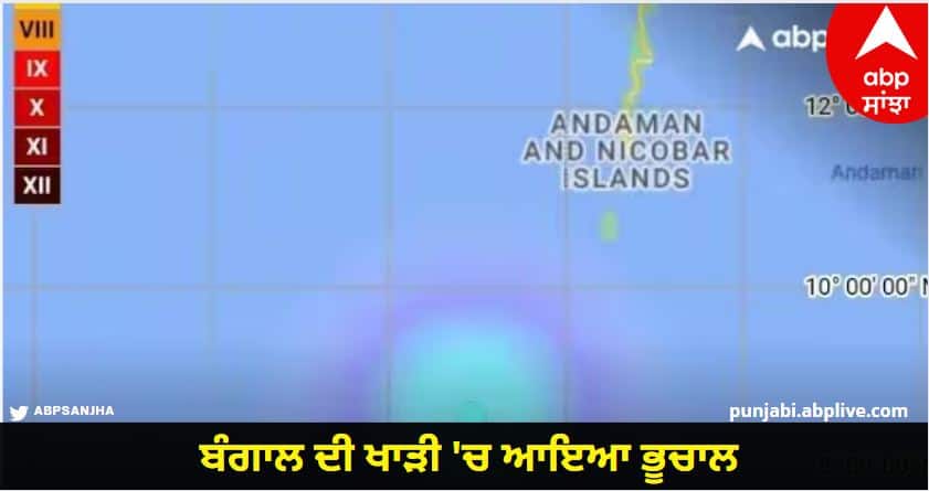 Earthquake in Bay of Bengal Today: ਮੰਗਲਵਾਰ (7 ਅਕਤੂਬਰ) ਸਵੇਰੇ ਬੰਗਾਲ ਦੀ ਖਾੜੀ ਵਿੱਚ ਭੂਚਾਲ ਦੇ ਤੇਜ਼ ਝਟਕੇ ਮਹਿਸੂਸ ਕੀਤੇ ਗਏ। ਭੂਚਾਲ ਦੇ ਇਹ ਝਟਕੇ ਸਵੇਰੇ 5.32 ਵਜੇ ਆਏ। ਨੈਸ਼ਨਲ ਸੈਂਟਰ ਫਾਰ ਸਿਸਮੋਲੋਜੀ ਮੁਤਾਬਕ ਇਸ ਭੂਚਾਲ ਦਾ ਸਥਾਨ ਬੰਗਾਲ ਦੀ ਖਾੜੀ 'ਚ 10 ਕਿਲੋਮੀਟਰ ਦੀ ਡੂੰਘਾਈ 'ਤੇ ਸੀ। ਕੇਂਦਰ ਵੱਲੋਂ ਜਾਰੀ ਤਸਵੀਰ ਵਿੱਚ ਦੇਖਿਆ ਜਾ ਸਕਦਾ ਹੈ ਕਿ ਭੂਚਾਲ ਦਾ ਕੇਂਦਰ ਅੰਡੇਮਾਨ ਨਿਕੋਬਾਰ ਟਾਪੂ ਤੋਂ ਦੂਰ ਦਿਖਾਈ ਦੇ ਰਿਹਾ ਹੈ। ਇਸ ਭੂਚਾਲ 'ਚ ਜਾਨੀ ਜਾਂ ਮਾਲੀ ਨੁਕਸਾਨ ਦੀ ਕੋਈ ਖਬਰ ਨਹੀਂ ਹੈ।