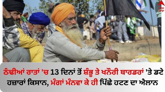 Farmers Protest: ਅੱਜ ਹਰਿਆਣਾ ਦੀਆਂ ਹੱਦਾਂ ਉਪਰ ਚੱਲ ਰਹੇ ਕਿਸਾਨ ਅੰਦੋਲਨ ਦਾ 13ਵਾਂ ਦਿਨ ਹੈ। ਪੰਜਾਬ ਦੇ ਕਿਸਾਨ ਸ਼ੰਭੂ ਤੇ ਖਨੌਰੀ ਬਾਰਡਰ 'ਤੇ ਡਟੇ ਹੋਏ ਹਨ। ਬੇਸ਼ੱਕ ਕਿਸਾਨਾਂ ਨੇ ਦਿੱਲੀ ਵੱਲ ਮਾਰਚ ਕਰਨ ਦਾ ਫੈਸਲਾ 29 ਫਰਵਰੀ ਤੱਕ ਟਾਲ ਦਿੱਤਾ ਹੈ ਪਰ ਉਨ੍ਹਾਂ ਦੇ ਹੌਸਲੇ ਬੁਲੰਦ ਹਨ। ਕਿਸਾਨਾਂ ਦਾ ਕਹਿਣਾ ਹੈ ਕਿ ਜਦੋਂ ਤੱਕ ਉਨ੍ਹਾਂ ਦੀਆਂ ਮੰਗਾਂ ਪੂਰੀਆਂ ਨਹੀਂ ਹੁੰਦੀਆਂ, ਉਹ ਘਰ ਵਾਪਸ ਨਹੀਂ ਜਾਣਗੇ।