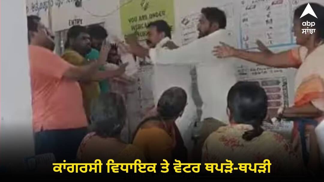 ਦਰਅਸਲ, ਆਂਧਰਾ ਪ੍ਰਦੇਸ਼ ਦੇ ਤੇਨਾਲੀ ਵਿੱਚ ਚੌਥੇ ਪੜਾਅ ਦੀ ਵੋਟਿੰਗ ਦੌਰਾਨ ਇੱਕ ਵੋਟਰ ਤੇ ਰਾਜ ਦੇ ਇੱਕ ਕਾਂਗਰਸੀ ਵਿਧਾਇਕ ਵਿਚਕਾਰ ਝਗੜਾ ਹੋ ਗਿਆ। ਵੋਟਰ ਗੋਟੂਮੁੱਕਲਾ ਸੁਧਾਕਰ ਚੌਥੇ ਪੜਾਅ ਦੀ ਵੋਟਿੰਗ ਵਿੱਚ ਆਪਣੀ ਵੋਟ ਪਾਉਣ ਲਈ ਸੁਬਾ ਤੇਨਾਲੀ ਬੂਥ ਗਏ ਸਨ। ਇਸ ਦੌਰਾਨ ਵਾਈਐਸਆਰ ਕਾਂਗਰਸ ਪਾਰਟੀ ਦੇ ਵਿਧਾਇਕ ਸ਼ਿਵਕੁਮਾਰ ਆਪਣੇ ਪਰਿਵਾਰ ਅਤੇ ਸਮਰਥਕਾਂ ਨਾਲ ਵੋਟ ਪਾਉਣ ਪਹੁੰਚੇ। ਜਦੋਂ ਸੁਧਾਕਰ ਨੇ ਬਿਨਾਂ ਲਾਈਨ 'ਚ ਖੜ੍ਹੇ ਹੋ ਕੇ ਵੋਟ ਪਾਉਣ 'ਤੇ ਇਤਰਾਜ਼ ਜਤਾਇਆ ਤਾਂ ਵਿਧਾਇਕ ਨੇ ਸੁਧਾਕਰ ਨੂੰ ਥੱਪੜ ਮਾਰ ਦਿੱਤਾ। ਇਸ ਤੋਂ ਗੁੱਸੇ 'ਚ ਆ ਕੇ ਸੁਧਾਕਰ ਨੇ ਵਿਧਾਇਕ ਨੂੰ ਥੱਪੜ ਵੀ ਮਾਰ ਦਿੱਤਾ, ਜਿਸ ਕਾਰਨ ਹੰਗਾਮਾ ਹੋ ਗਿਆ।