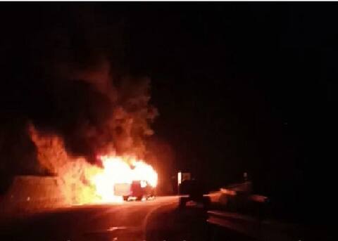 ਸੜਕ 'ਤੇ ਵੋਲਵੋ ਬੱਸ ਨੂੰ ਲੱਗੀ ਅੱਗ
