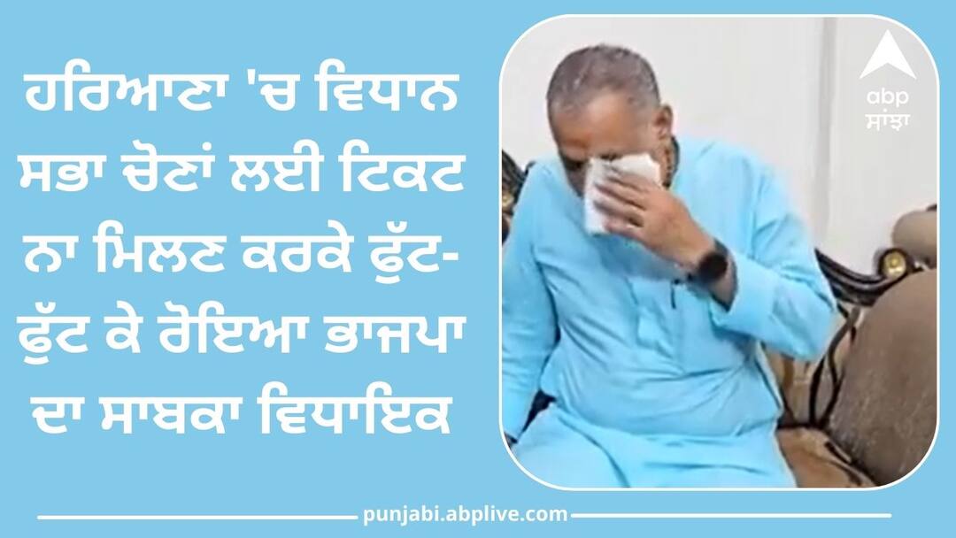 Haryana Election: ਹਰਿਆਣਾ ਵਿਧਾਨ ਸਭਾ ਚੋਣਾਂ 2024 ਲਈ ਭਾਜਪਾ ਵੱਲੋਂ ਜਾਰੀ ਉਮੀਦਵਾਰਾਂ ਦੀ ਸੂਚੀ ਨੂੰ ਲੈ ਕੇ ਪਾਰਟੀ ਆਗੂਆਂ ਵਿੱਚ ਨਾਰਾਜ਼ਗੀ ਹੈ। ਬੀਜੇਪੀ ਦੇ ਇੱਕ ਸਾਬਕਾ ਵਿਧਾਇਕ ਨੇ ਸ਼ੁੱਕਰਵਾਰ ਨੂੰ ਇੰਟਰਵਿਊ ਦੌਰਾਨ ਇਸ ਵਾਰ ਟਿਕਟ ਨਾ ਮਿਲਣ ਕਾਰਨ ਰੋਣਾ ਸ਼ੁਰੂ ਕਰ ਦਿੱਤਾ।