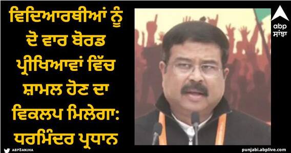 Board Exams Twice: ਕੇਂਦਰੀ ਸਿੱਖਿਆ ਮੰਤਰੀ ਧਰਮਿੰਦਰ ਪ੍ਰਧਾਨ ਨੇ ਸੋਮਵਾਰ ਨੂੰ ਕਿਹਾ ਕਿ ਵਿਦਿਆਰਥੀਆਂ ਕੋਲ ਅਕਾਦਮਿਕ ਸੈਸ਼ਨ 2025-26 ਤੋਂ ਦੋ ਵਾਰ 10ਵੀਂ ਅਤੇ 12ਵੀਂ ਜਮਾਤ ਦੀਆਂ ਬੋਰਡ ਪ੍ਰੀਖਿਆਵਾਂ ਦੇਣ ਦਾ ਵਿਕਲਪ ਹੋਵੇਗਾ। ਪ੍ਰਧਾਨ ਛੱਤੀਸਗੜ੍ਹ 'ਚ 'ਪੀਐੱਮ ਸ਼੍ਰੀ' (ਪ੍ਰਾਈਮ ਮਿਨਿਸਟਰ ਸਕੂਲ ਫਾਰ ਰਾਈਜ਼ਿੰਗ ਇੰਡੀਆ) ਯੋਜਨਾ ਨੂੰ ਲਾਂਚ ਕਰਨ ਮੌਕੇ ਸਮਾਗਮ ਨੂੰ ਸੰਬੋਧਨ ਕਰ ਰਹੇ ਸਨ। ਇਸ ਸਕੀਮ ਤਹਿਤ ਸੂਬੇ ਦੇ 211 ਸਕੂਲਾਂ ਨੂੰ ਅਪਗ੍ਰੇਡ ਕੀਤਾ ਜਾਵੇਗਾ। ਇਹ ਸਮਾਰੋਹ ਪੰਡਿਤ ਦੀਨਦਿਆਲ ਉਪਾਧਿਆਏ ਆਡੀਟੋਰੀਅਮ, ਰਾਏਪੁਰ ਵਿਖੇ ਕਰਵਾਇਆ ਗਿਆ।