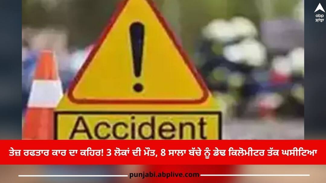Haryana News: ਰੋਹਤਕ ਤੋਂ ਦਿਲ ਦਹਿਲਾਉਣ ਵਾਲੀ ਖਬਰ ਸਾਹਮਣੇ ਆਈ ਹੈ। ਇੱਤ ਤੇਜ਼ ਰਫਤਾਰ ਕਾਰ ਨੇ 8 ਸਾਲ ਦੇ ਬੱਚੇ ਸਮੇਤ 4 ਲੋਕਾਂ ਨੂੰ ਲਪੇਟ 'ਚ ਲੈ ਲਿਆ। ਇਸ ਹਾਦਸੇ ਵਿੱਚ 3 ਲੋਕਾਂ ਦੀ ਮੌਤ ਹੋ ਗਈ। ਹੈਰਾਨੀ ਦੀ ਗੱਲ ਹੈ ਕਿ ਇਸ ਦੌਰਾਨ ਕਾਰ ਸਵਾਰ ਨੇ ਸਾਰੀਆਂ ਹੱਦਾਂ ਪਾਰ ਕਰ ਦਿੱਤੀਆਂ। ਟੱਕਰ ਮਾਰਨ ਤੋਂ ਬਾਅਦ ਕਾਰ ਚਾਲਕ 8 ਸਾਲ ਦੇ ਬੱਚੇ ਨੂੰ ਡੇਢ ਕਿਲੋਮੀਟਰ ਤੱਕ ਘਸੀਟਦਾ ਰਿਹਾ।