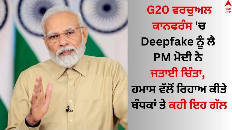 PM Modi Speech In G20 Virtual Summit: ਪ੍ਰਧਾਨ ਮੰਤਰੀ ਨਰਿੰਦਰ ਮੋਦੀ ਨੇ ਜੀ-20 ਵਰਚੁਅਲ ਸਿਖਰ ਸੰਮੇਲਨ 'ਚ ਕਈ ਮੁੱਦਿਆਂ 'ਤੇ ਚਰਚਾ ਕੀਤੀ। ਉਨ੍ਹਾਂ ਕਿਹਾ, "ਪੂਰੀ ਦੁਨੀਆ ਏਆਈ ਦੀ ਨਕਾਰਾਤਮਕ ਵਰਤੋਂ ਨੂੰ ਲੈ ਕੇ ਚਿੰਤਾ ਵਧ ਰਹੀ ਹੈ। ਭਾਰਤ ਦਾ ਸਪੱਸ਼ਟ ਵਿਚਾਰ ਹੈ ਕਿ ਏਆਈ ਦੇ ਗਲੋਬਲ ਰੈਗੂਲੇਸ਼ਨ ਨੂੰ ਲੈ ਕੇ ਸਾਨੂੰ ਮਿਲ ਕੰਮ ਕਰਨਾ ਚਾਹੀਦਾ ਹੈ।"