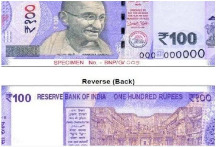 - ਨੋਟ ਦੇ ਪਿੱਛੇ-ਖੱਬੇ ਪਾਸੇ ਮੁਦਰਣ ਨਿਸ਼ਾਨ, ਨਾਅਰੇ ਦੇ ਨਾਲ ਸਵੱਛ ਭਾਰਤ ਦਾ ਨਿਸ਼ਾਨ, ਭਾਸ਼ਾ ਪੈਨਲ, ‘ਰਾਣੀ ਦੀ ਵਾਵ’ ਦੀ ਫੋਟੋ ਤੇ ਹਿੰਦੀ ‘ਚ 100 ਲਿਖਿਆ ਵੀ ਮਿਲੇਗਾ।