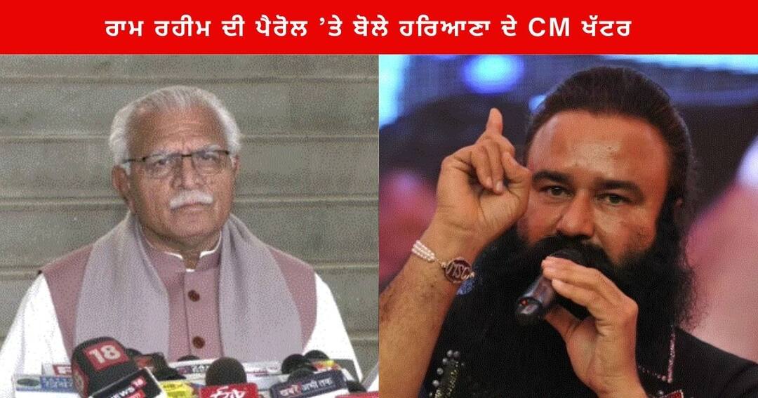 Gurmeet Ram Rahim Singh Parole : ਡੇਰਾ ਸੱਚਾ ਸੌਦਾ ਮੁਖੀ ਗੁਰਮੀਤ ਰਾਮ ਰਹੀਮ ਨੂੰ 40 ਦਿਨਾਂ ਦੀ ਪੈਰੋਲ ਮਿਲਣ 'ਤੇ ਹਰਿਆਣਾ ਦੇ ਮੁੱਖ ਮੰਤਰੀ ਮਨੋਹਰ ਲਾਲ ਖੱਟਰ ਨੇ ਕਿਹਾ ਕਿ ਉਨ੍ਹਾਂ ਨੂੰ ਇਸ ਦੀ ਜਾਣਕਾਰੀ ਨਹੀਂ ਹੈ। ਹਰਿਆਣਾ ਦੇ ਮੁੱਖ ਮੰਤਰੀ ਮਨੋਹਰ ਲਾਲ ਖੱਟਰ ਨੇ ਸ਼ਨੀਵਾਰ (21 ਜਨਵਰੀ) ਨੂੰ ਕਿਹਾ, “ਮੈਨੂੰ ਨਹੀਂ ਪਤਾ ਕਿ ਡੇਰਾ ਸੱਚਾ ਸੌਦਾ ਮੁਖੀ ਗੁਰਮੀਤ ਰਾਮ ਰਹੀਮ ਨੂੰ 40 ਦਿਨਾਂ ਦੀ ਪੈਰੋਲ ਮਿਲੀ ਹੈ। ਜੇਕਰ ਉਸ ਨੂੰ ਪੈਰੋਲ ਮਿਲੀ ਵੀ ਹੈ ਤਾਂ ਉਸ ਨੂੰ ਪੂਰੀ ਪ੍ਰਕਿਰਿਆ ਦਾ ਪਾਲਣ ਕਰਨ ਤੋਂ ਬਾਅਦ ਹੀ ਮਿਲੀ ਹੋਵੇਗੀ ਅਤੇ ਇਹ ਉਸ ਦਾ ਹੱਕ ਹੈ। ਮੈਂ ਇਸ ਮਾਮਲੇ ਵਿੱਚ ਦਖਲ ਨਹੀਂ ਦੇਵਾਂਗਾ।