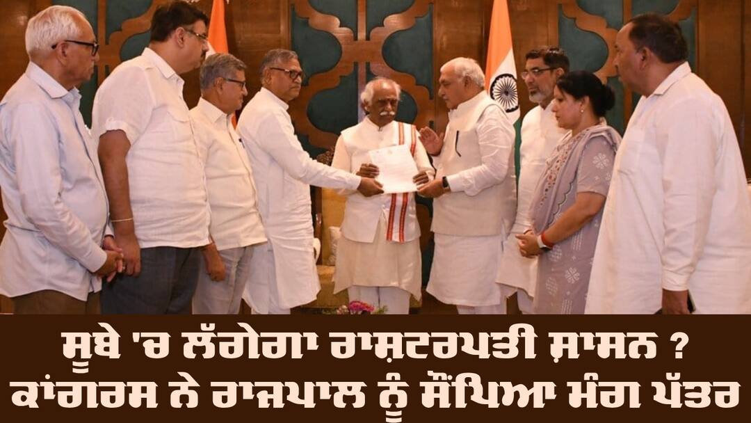 President Rule: ਹਰਿਆਣਾ ਦੇ ਸਾਬਕਾ ਮੁੱਖ ਮੰਤਰੀ ਤੇ ਵਿਰੋਧੀ ਧਿਰ ਦੇ ਆਗੂ ਭੁਪਿੰਦਰ ਸਿੰਘ ਹੁੱਡਾ ਅਤੇ ਹਰਿਆਣਾ ਕਾਂਗਰਸ ਦੇ ਪ੍ਰਧਾਨ ਚੌਧਰੀ ਉਦੈ ਭਾਨ ਦੀ ਅਗਵਾਈ ਹੇਠ ਕਾਂਗਰਸ ਦੇ ਵਫਦ ਨੇ ਚੰਡੀਗੜ੍ਹ ਵਿੱਚ ਸੂਬੇ ਦੇ ਰਾਜਪਾਲ ਬੰਡਾਰੂ ਦੱਤਾਤ੍ਰੇਅ ਨਾਲ ਮੁਲਾਕਾਤ ਕੀਤੀ।