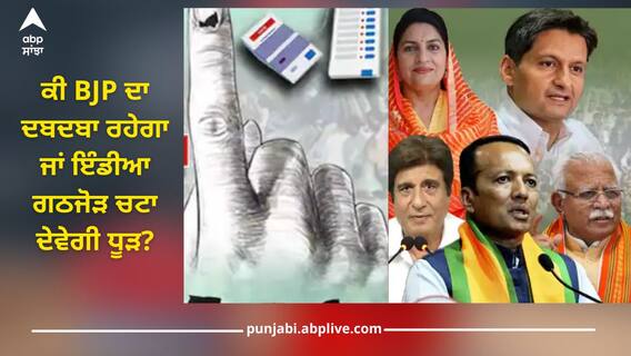 Haryana Exit Poll Result 2024 ABP Cvoter: ਭਾਜਪਾ, ਜੇਜੇਪੀ, ਕਾਂਗਰਸ ਅਤੇ ਭਾਰਤੀ ਲੋਕ ਦਲ ਸਾਰੀਆਂ ਹੀ ਲੋਕ ਸਭਾ ਚੋਣਾਂ ਵਿੱਚ ਚੰਗੀ ਕਾਰਗੁਜ਼ਾਰੀ ਦੇ ਦਾਅਵੇ ਕਰ ਰਹੀਆਂ ਹਨ, ਪਰ ਭਾਜਪਾ ਨੂੰ ਛੱਡ ਕੇ ਬਾਕੀ ਤਿੰਨ ਪਾਰਟੀਆਂ 2019 ਵਿੱਚ ਆਪਣਾ ਖਾਤਾ ਵੀ ਨਹੀਂ ਖੋਲ੍ਹ ਸਕੀਆਂ, ਇਸ ਲਈ ਇਸ ਵਾਰ ਇੱਥੇ ਆਮ ਆਦਮੀ ਪਾਰਟੀ ਵੀ ਚੋਣ ਮੈਦਾਨ ਵਿੱਚ ਹੈ। ਅਜਿਹੇ 'ਚ ਕੀ ਇਹ ਚਾਰੇ ਪਾਰਟੀਆਂ ਹਰਿਆਣਾ 'ਚ ਆਪਣਾ ਖਾਤਾ ਖੋਲ੍ਹ ਸਕਣਗੀਆਂ ਅਤੇ ਕੀ ਇੱਥੇ ਭਾਜਪਾ ਫਿਰ ਤੋਂ ਸਭ ਤੋਂ ਵੱਡੀ ਪਾਰਟੀ ਹੋਵੇਗੀ? ਇਸ ਬਾਰੇ 'ਚ ਏਬੀਪੀ ਸੀ-ਵੋਟਰ ਦਾ ਐਗਜ਼ਿਟ ਪੋਲ ਸਾਹਮਣੇ ਆਇਆ ਹੈ, ਜਿਸ 'ਚ ਕਈ ਵੱਡੀਆਂ ਗੱਲਾਂ ਸਾਹਮਣੇ ਆਈਆਂ ਹਨ।