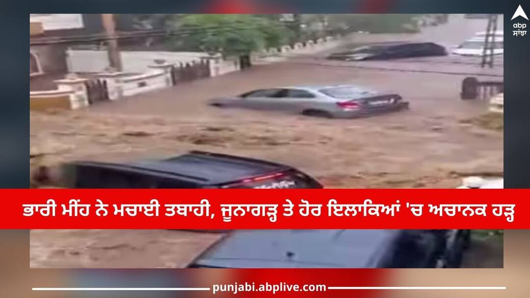 8 ਘੰਟਿਆਂ 'ਚ 219 ਮਿਲੀਮੀਟਰ ਬਾਰਿਸ਼ ਹੋਈਜੂਨਾਗੜ੍ਹ 'ਚ 8 ਘੰਟਿਆਂ 'ਚ 219 ਮਿਲੀਮੀਟਰ ਬਾਰਿਸ਼ ਹੋਈ, ਜਿਸ ਨਾਲ ਸ਼ਹਿਰ ਬੁਰੀ ਤਰ੍ਹਾਂ ਪ੍ਰਭਾਵਿਤ ਹੋਇਆ। ਉੱਥੇ ਖੜ੍ਹੀਆਂ ਕਾਰਾਂ ਅਤੇ ਪਸ਼ੂ ਗੰਦੇ ਪਾਣੀ ਵਿੱਚ ਵਹਿ ਗਏ, ਲੋਕ ਸੁਰੱਖਿਅਤ ਥਾਵਾਂ 'ਤੇ ਪਹੁੰਚਣ ਲਈ ਕਮਰ ਤੱਕ ਡੂੰਘੇ ਪਾਣੀ ਵਿੱਚੋਂ ਲੰਘਦੇ ਦੇਖੇ ਗਏ। ਇਸ ਤੋਂ ਇਲਾਵਾ ਨੀਵੇਂ ਇਲਾਕਿਆਂ ਤੋਂ ਲੋਕਾਂ ਨੂੰ ਸੁਰੱਖਿਅਤ ਥਾਵਾਂ 'ਤੇ ਪਹੁੰਚਾਉਣ ਲਈ ਬਚਾਅ ਟੀਮਾਂ ਤਾਇਨਾਤ ਕੀਤੀਆਂ ਗਈਆਂ ਹਨ।